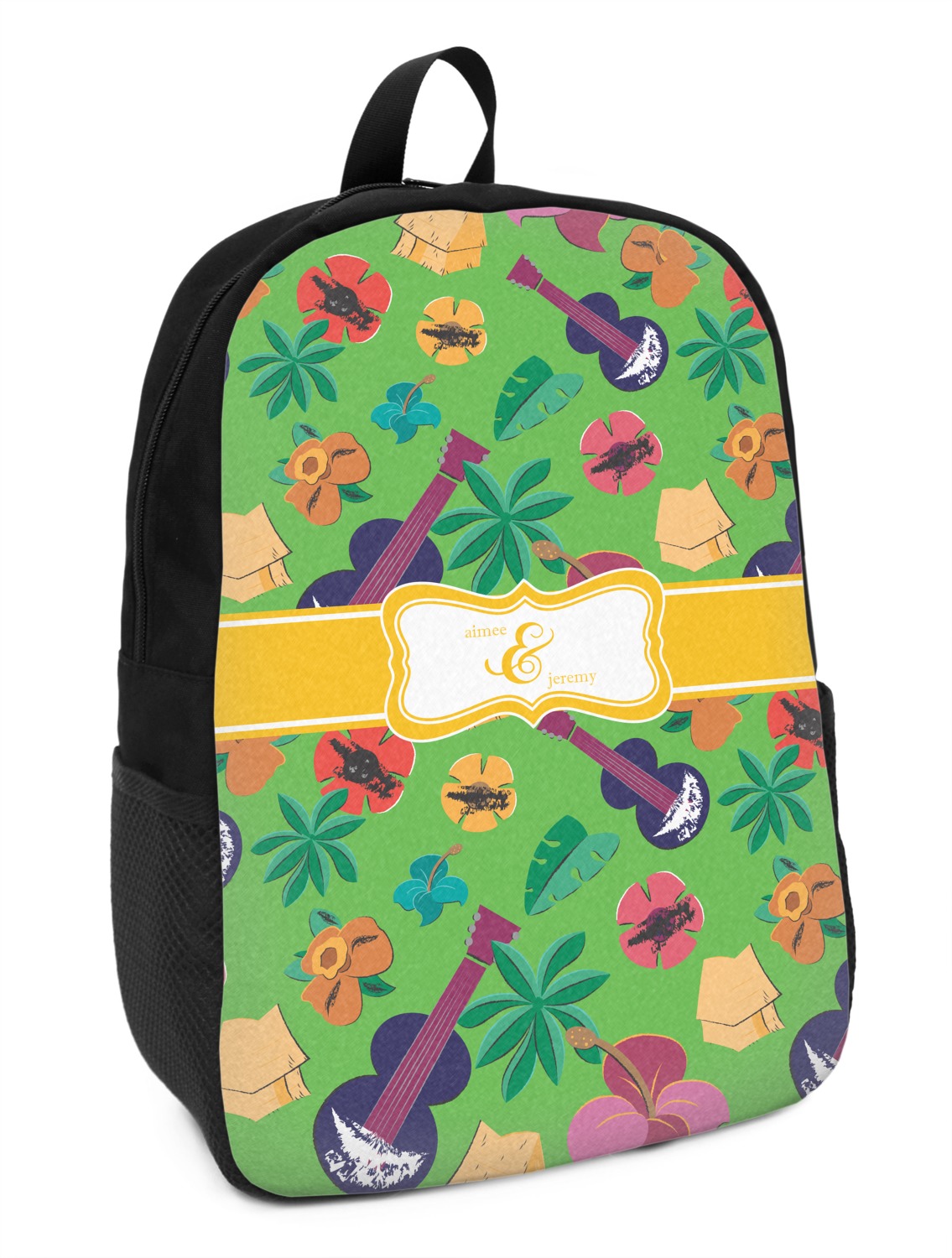 What's more classic Hawaiian than ukuleles, tiki huts, and flirty flowers? This bright design will send you straight back to better days, spent lounging on a beach in some tropical paradise.
