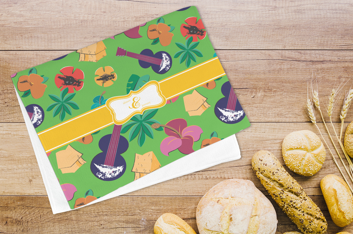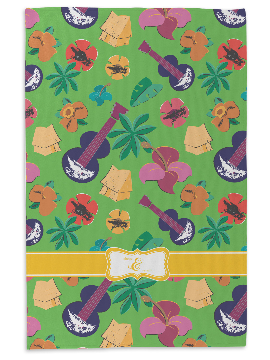 What's more classic Hawaiian than ukuleles, tiki huts, and flirty flowers? This bright design will send you straight back to better days, spent lounging on a beach in some tropical paradise.