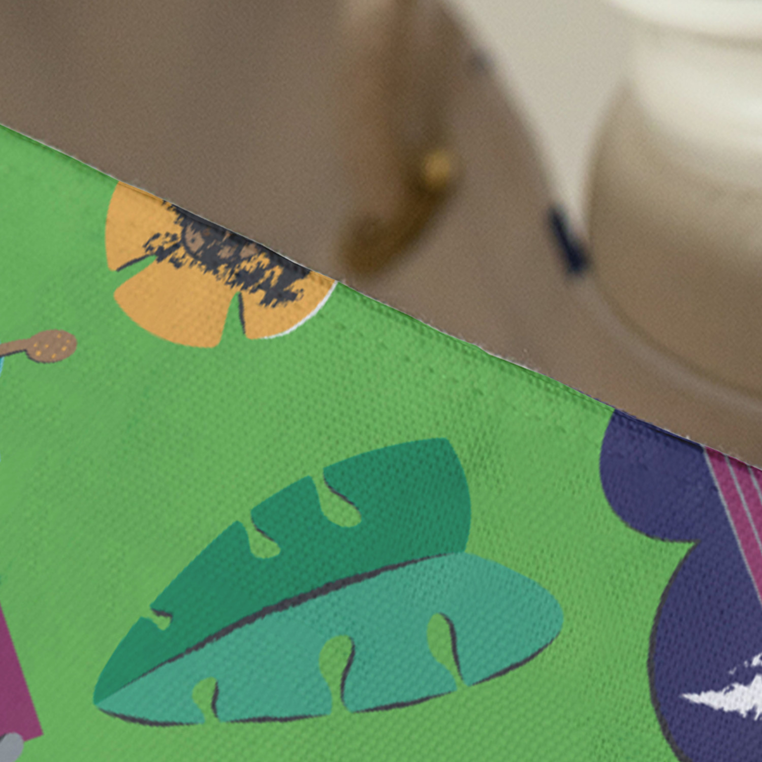 What's more classic Hawaiian than ukuleles, tiki huts, and flirty flowers? This bright design will send you straight back to better days, spent lounging on a beach in some tropical paradise.
