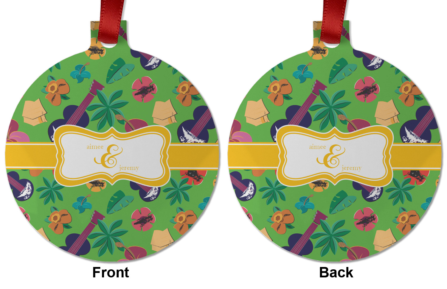 We offer double-sided printing on our personalized metal ornaments all with a gloss finish to make sure your Christmas tree continues to illuminate through the night. We offer 4 different metal ornament shapes to help express yourself or loved ones! Choose from our ball, paw print, star, or frame metal ornaments. Each metal ornament is an aluminum material sure to last you as many years as needed to share the joy and warmth of the holiday. We pair each customizable ornament with a red ribbon to tie your ornament and hang on your Christmas tree!