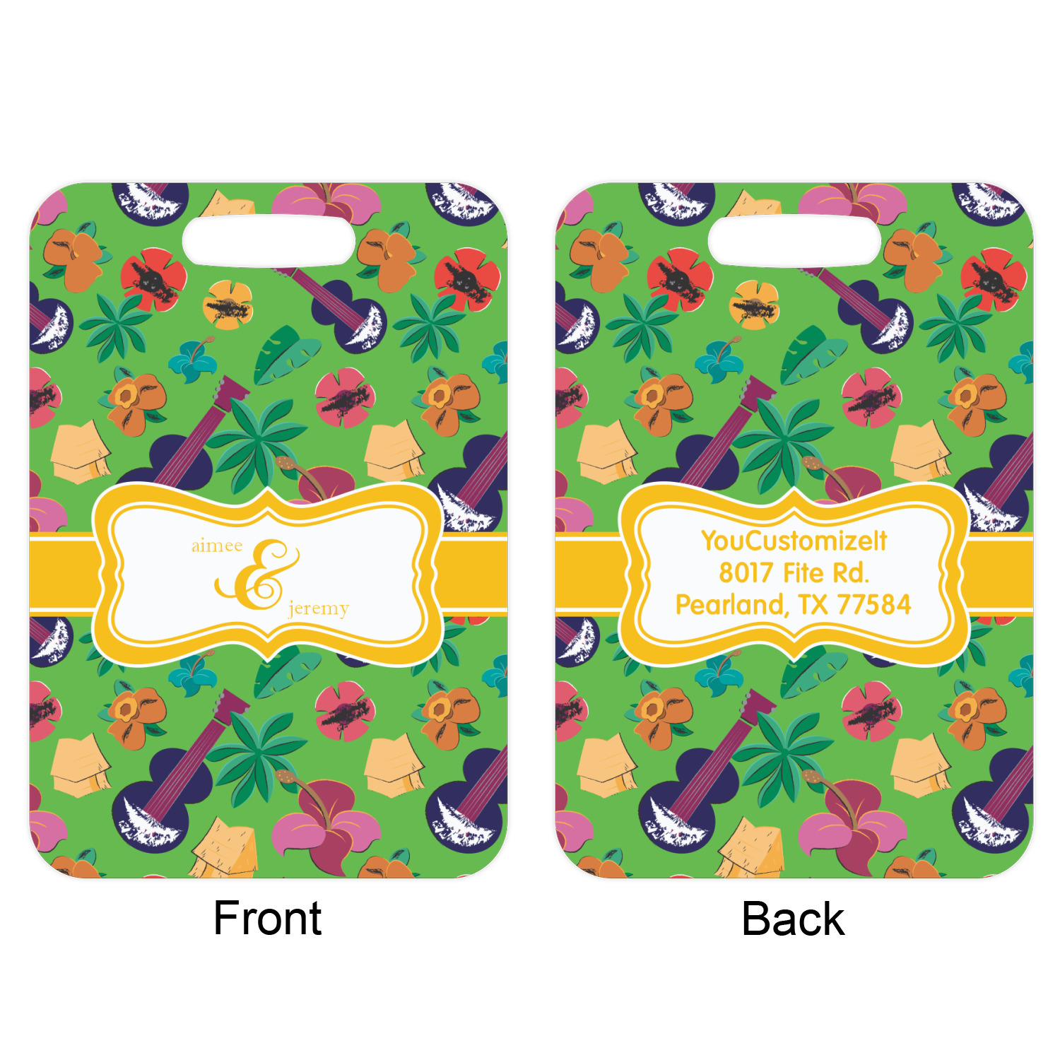 These metal luggage tags are printed on both sides; the front is printed with the design of your choice - and can be personalized with your name, name & initial or your monogram. The back can have as much or as little of your contact information as you desire - your name, your address, city, zip & state, you can also include your phone number and email address. Customize it exactly the way you want it!