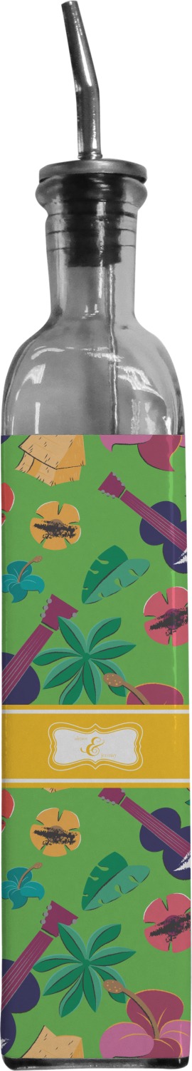 Made from recycled glass in Spain, these oil bottles have a classic, delicate look, and are accompanied by a metal spout for controlled pouring. Each bottle holds approximately 13 ounces and measures at 12 by 2 inches. We customize your glass oil bottle by applying your personalized design on the front and sides, using an adhesive. Our customizable stickers are made from high quality, gloss vinyl and are printed with waterproof, eco-solvent inks. These pieces are machine cut for accuracy and symmetry. The result is a robust, waterproof, adhesive decal that will not fade or deteriorate with time.
