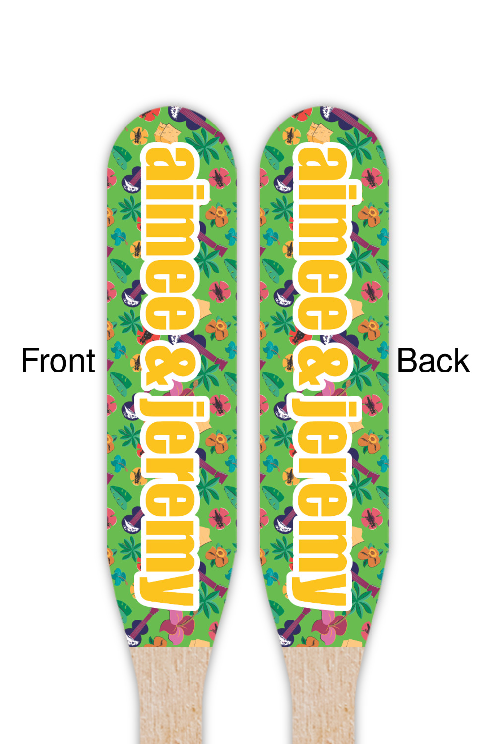 Our paddle style food & drink picks are available in 2 print styles - single sided and double sided.