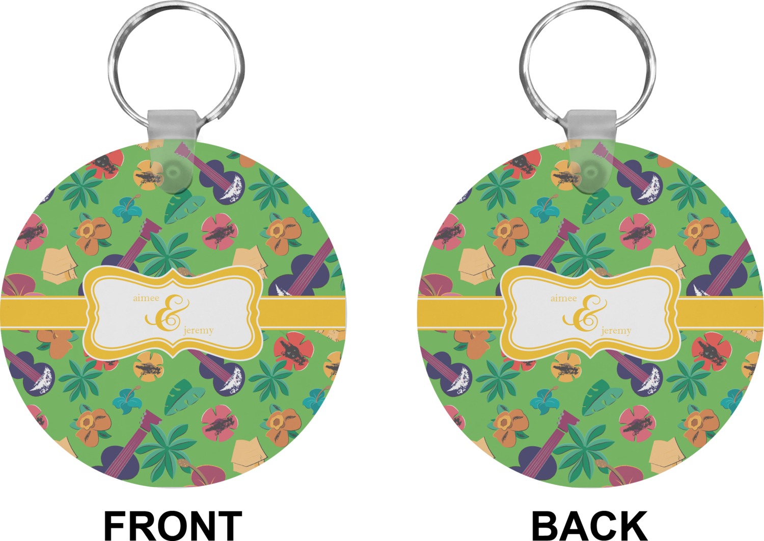 Our personalized keychains attach to the included metal, split key ring with a plastic, removable snap. Since a metal ring is included with your purchase, you have the liberty to keep your keys together on the ring, with or without your unique keychain. We offer this keychain in three different shapes: circle, heart, or diamond. We print your personalized design(s) on both sides of the key chain, and the surface has a glossy, reflective finish that only emphasizes your design. Each keychain is approximately 2.25 by 2.25 inches.