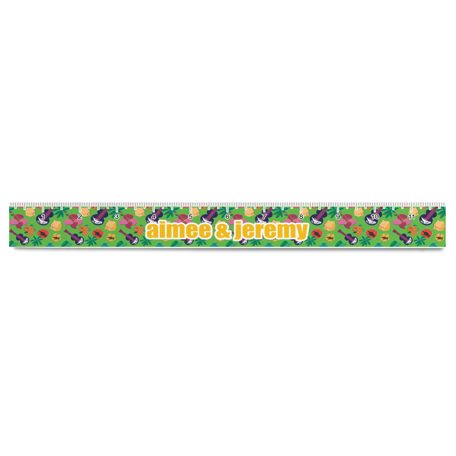 What's more classic Hawaiian than ukuleles, tiki huts, and flirty flowers? This bright design will send you straight back to better days, spent lounging on a beach in some tropical paradise.