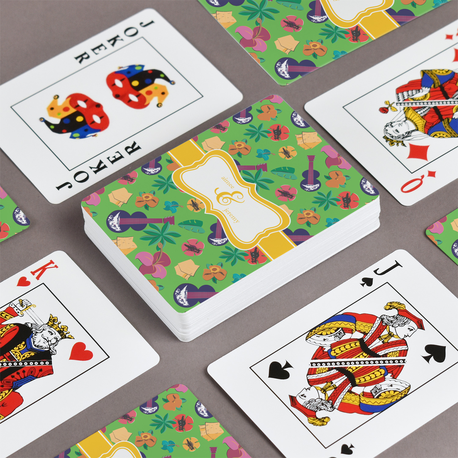 Our playing cards are perfect for family game nights or poker nights. A deck of customized playing cards ups the level of fun & entertainment to your game or poker nights. Imagine playing cards customized to match the theme of your game room, or game night, or that special event, or occasion with gambling tables!