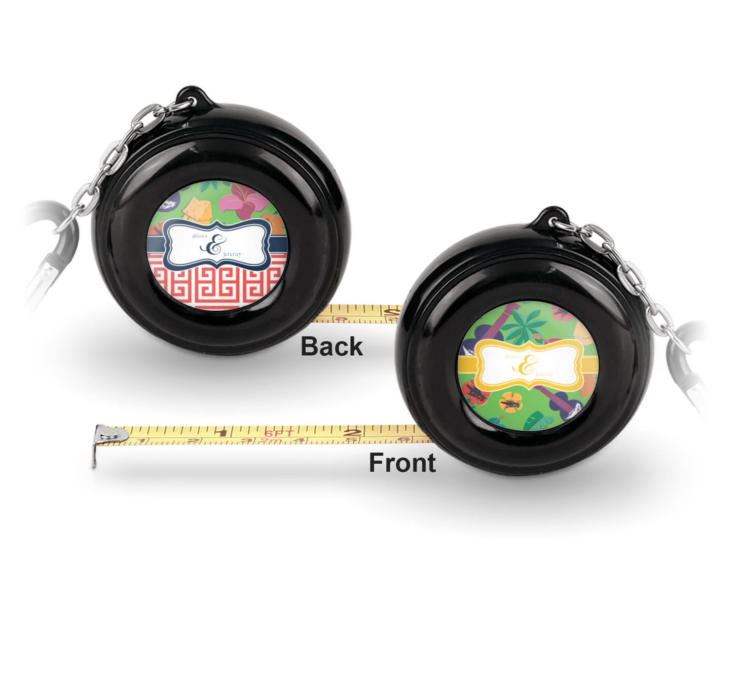 Now for personalizing! You get to personalize both sides of your tape measure. Have fun picking a cute pattern, font, or graphic! Make your personality shine through this fun tool.