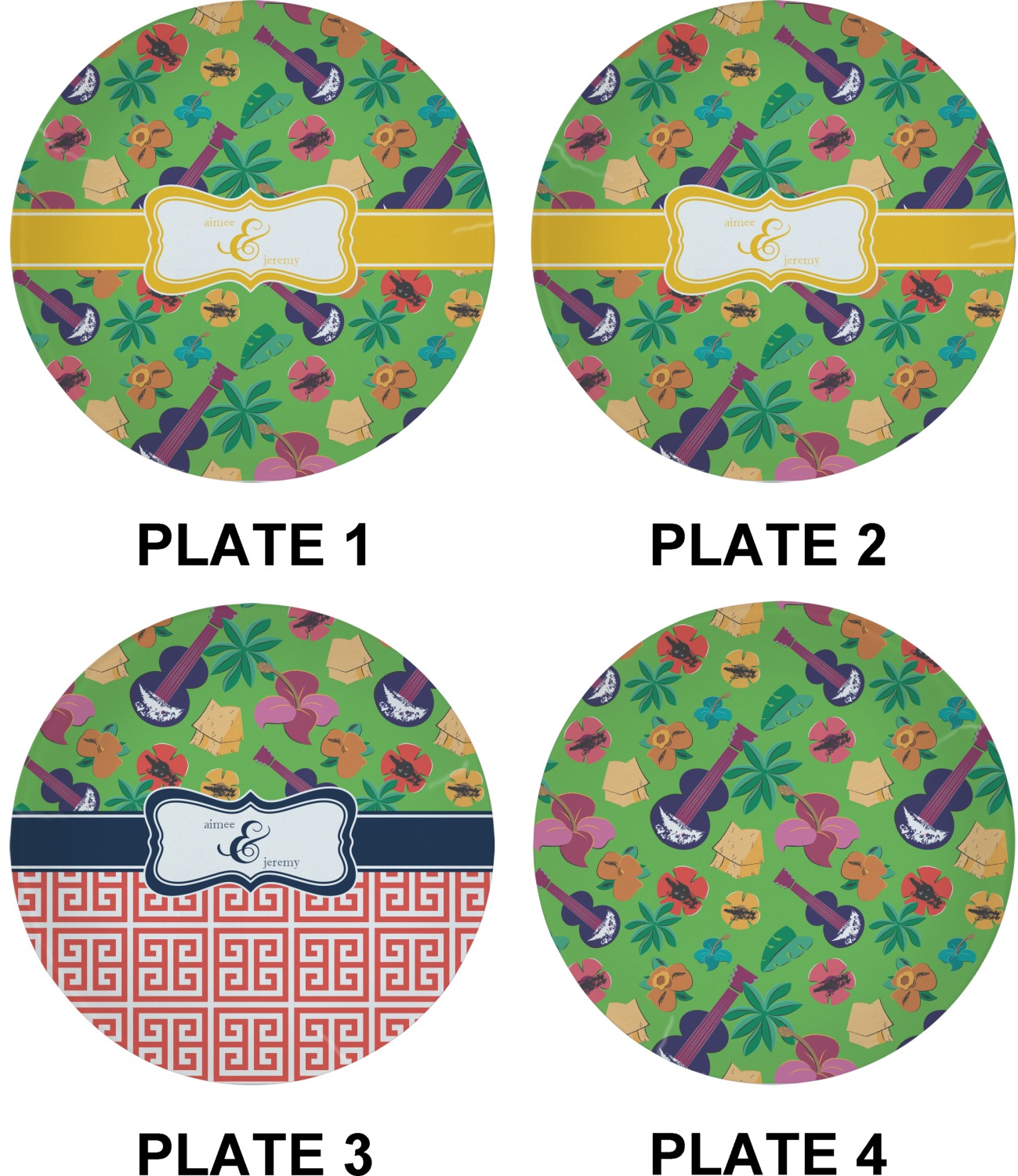 With a of designs and patterns, these plates are completely customizable. Choose a foodie design, complete with red-hot chili peppers, or go classic with stripes or plaid. Include your monogram or family name to make sure these plates never get lost at parties!