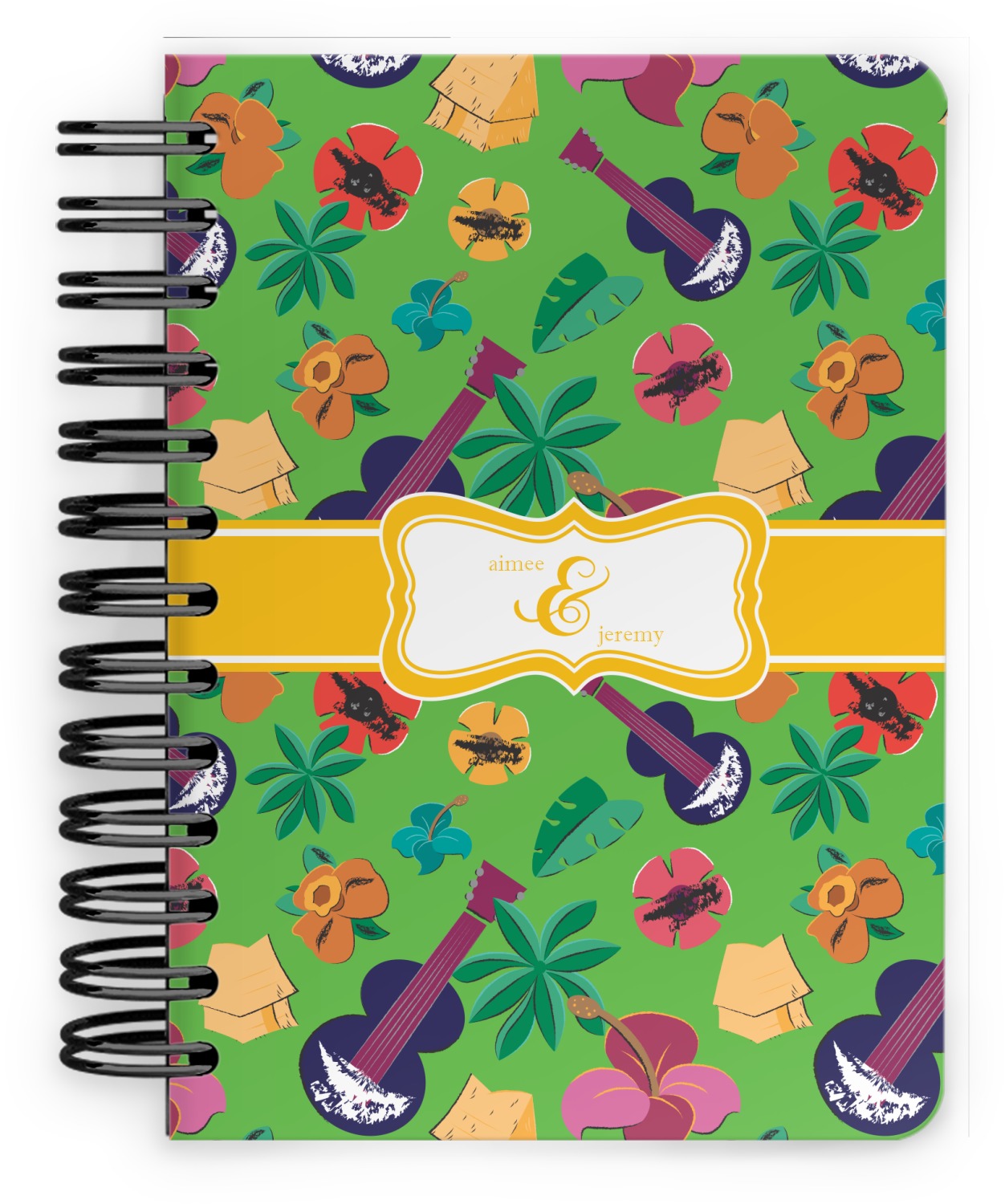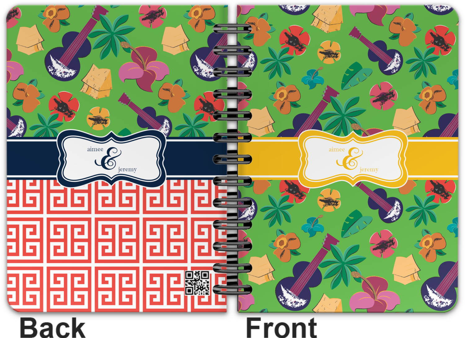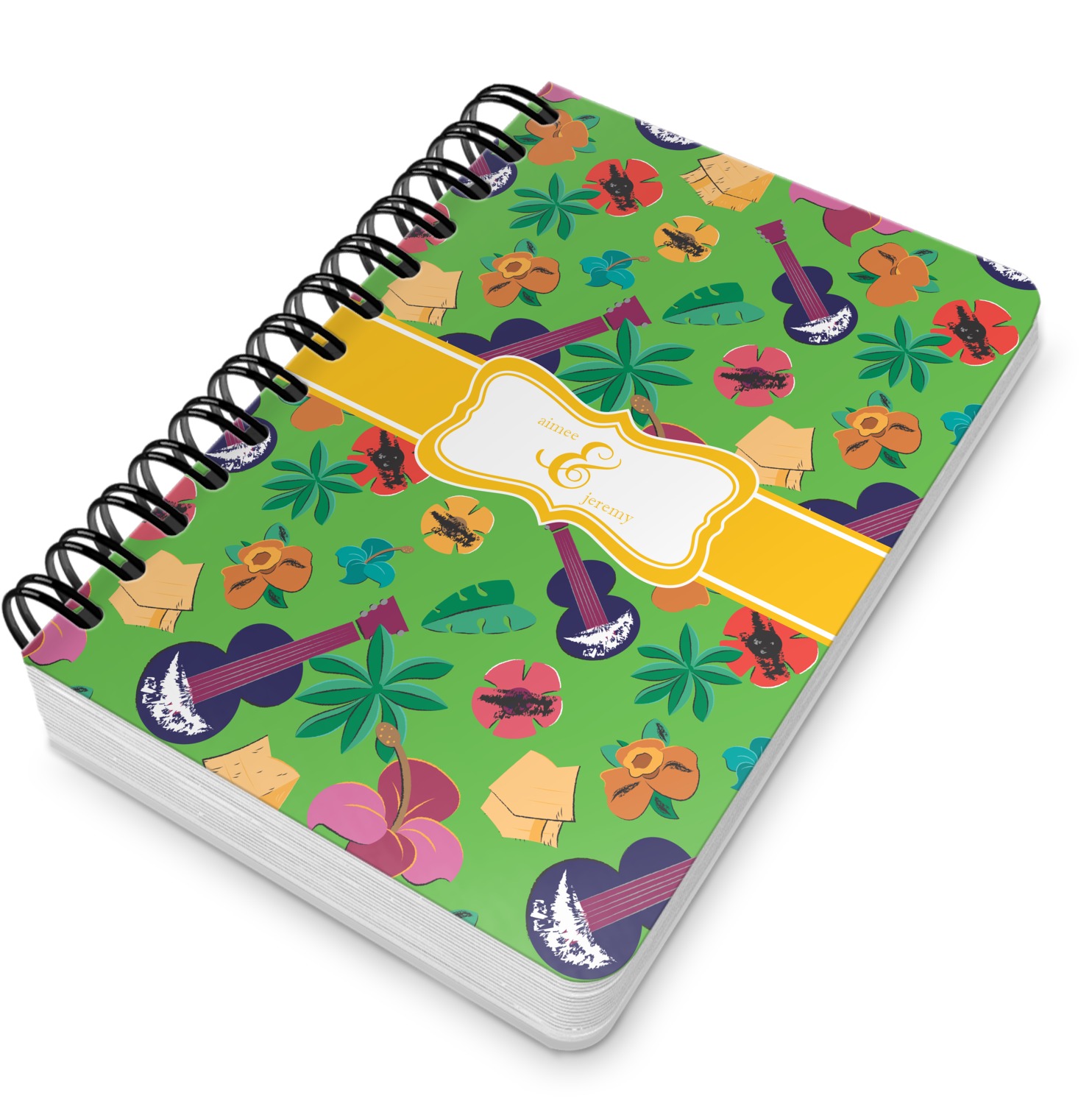 This spiral notebook includes 75 sheets of thick, ruled paper. The front and back of this custom notebook is made of a robust, laminate, plastic covering. We print your personalization on these two panels, underneath a glossy finish, which emphasizes the colors of your design. The two panels and the sheets of paper are held together by a sturdy, black coil. The paper within your bound notebook is perforated for easy, clean tearing.