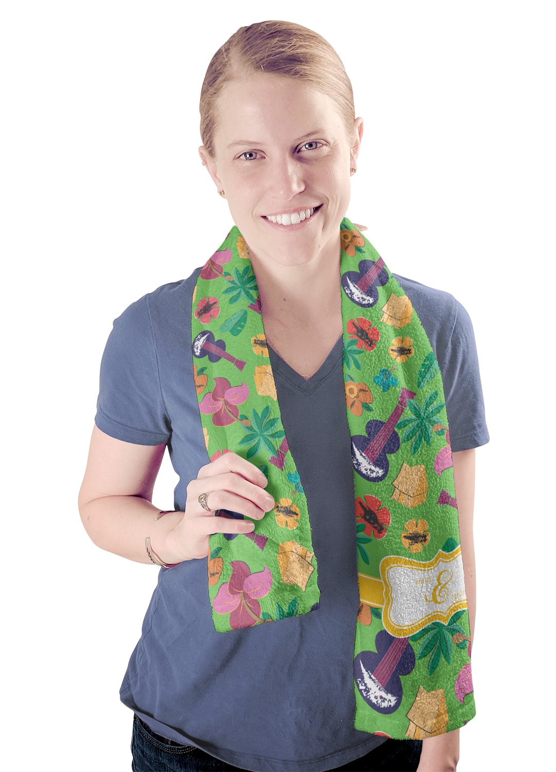 These towels are 44" x 12", which are the perfect size for hanging around your neck on the treadmill or wiping your brow after a hard workout. They are full-print towels with your very own design printed right on the front! They are perfect for soaking up moisture and are quite soft against your skin.