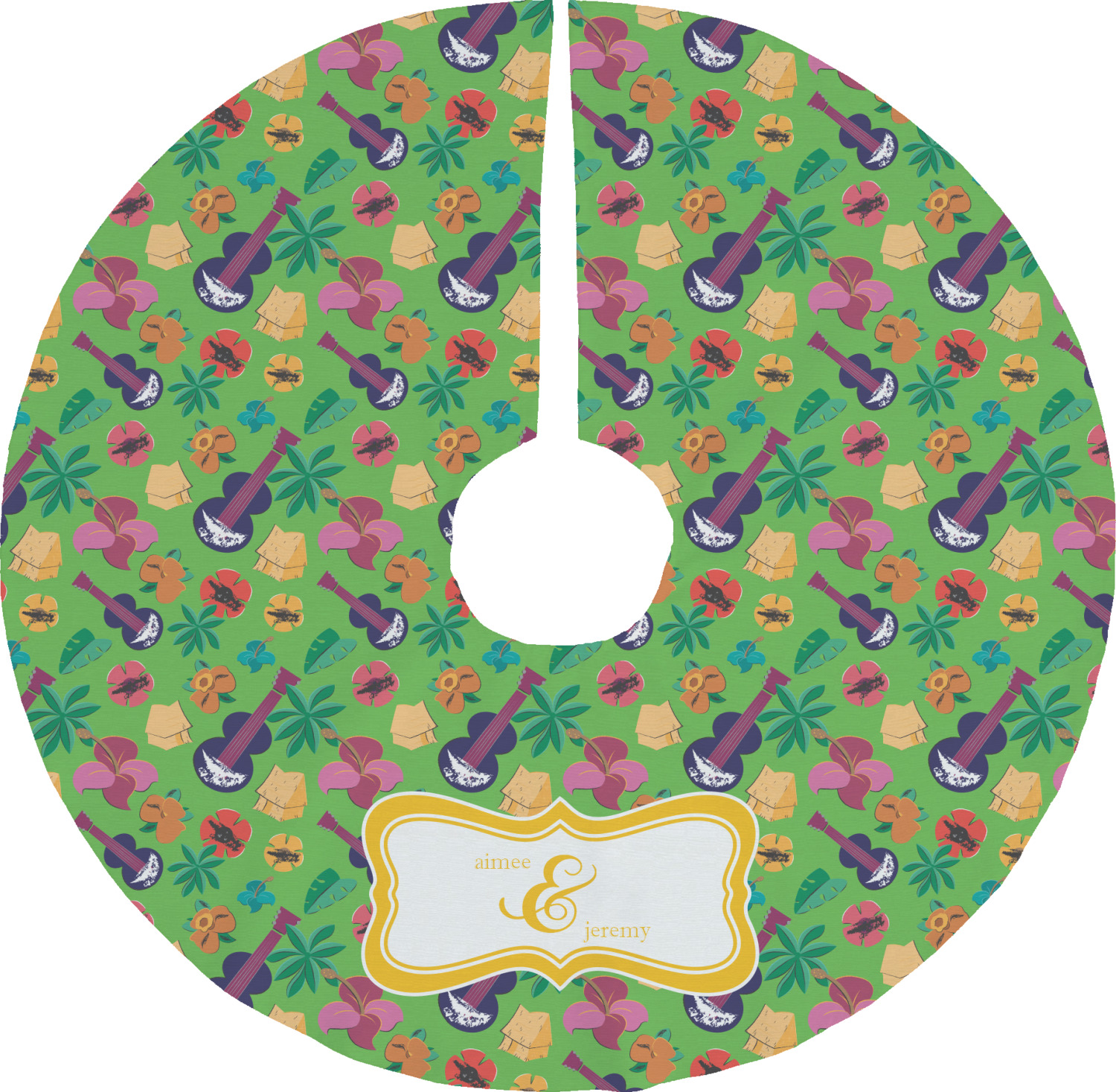 What's more classic Hawaiian than ukuleles, tiki huts, and flirty flowers? This bright design will send you straight back to better days, spent lounging on a beach in some tropical paradise.