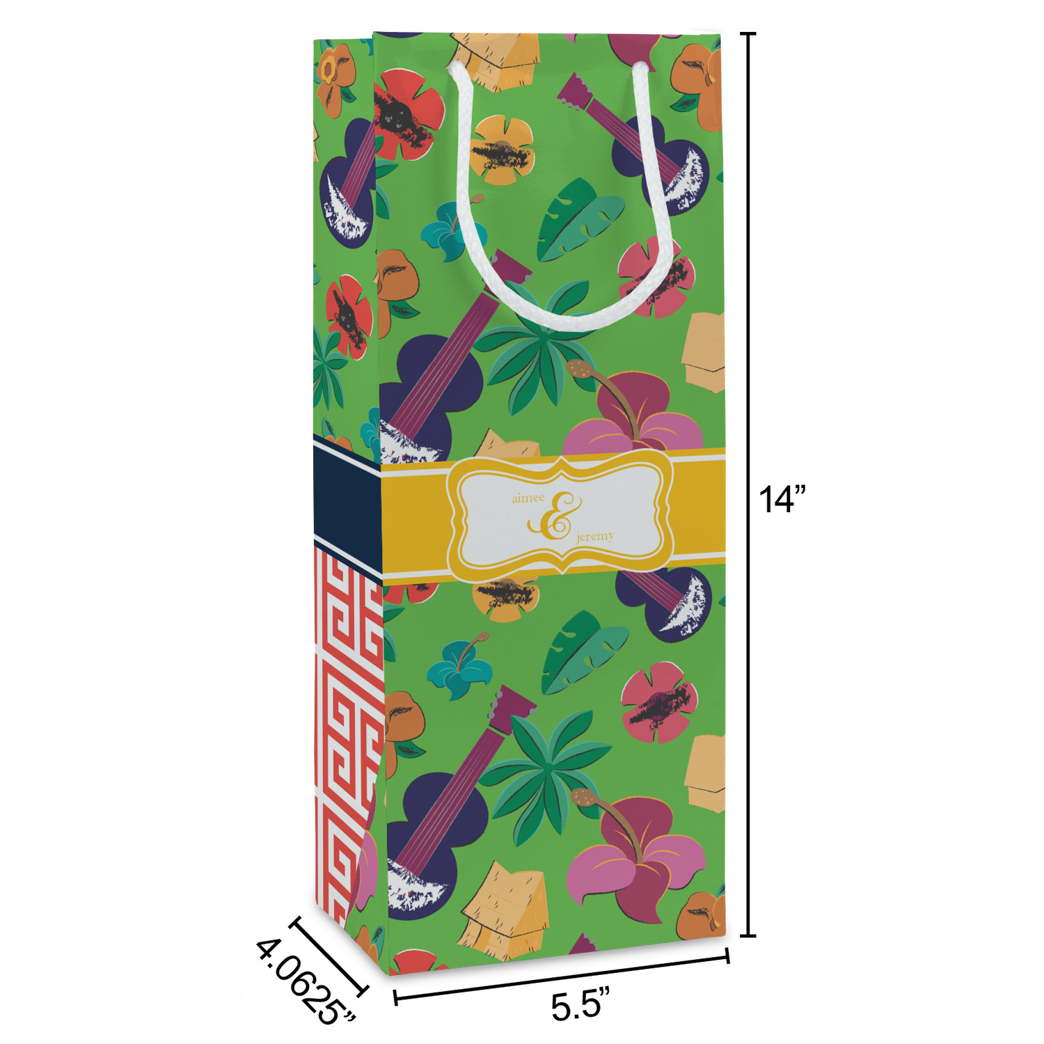 Our wine bags are printed on premium paper. The bags are then cut, scored and folded. The handles and cardstock base it attached. These custom wine bags are printed and made in the USA.