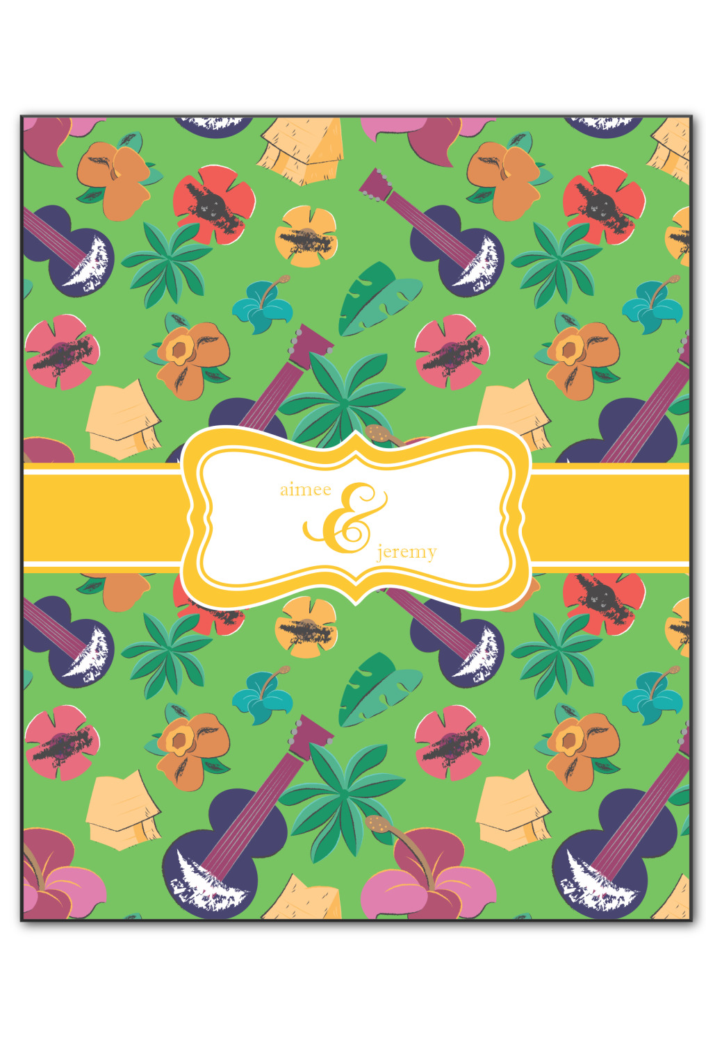 What's more classic Hawaiian than ukuleles, tiki huts, and flirty flowers? This bright design will send you straight back to better days, spent lounging on a beach in some tropical paradise.