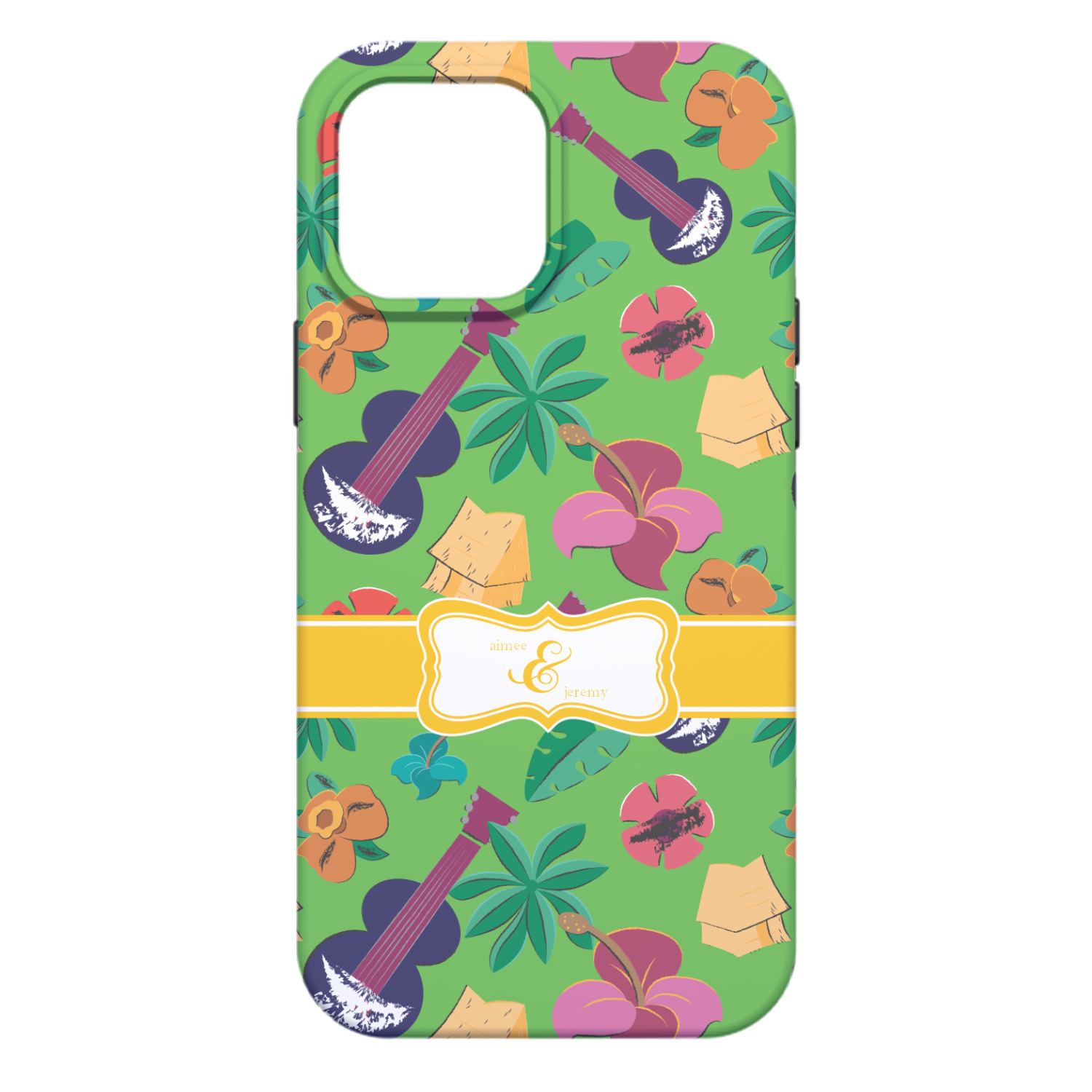 What's more classic Hawaiian than ukuleles, tiki huts, and flirty flowers? This bright design will send you straight back to better days, spent lounging on a beach in some tropical paradise.