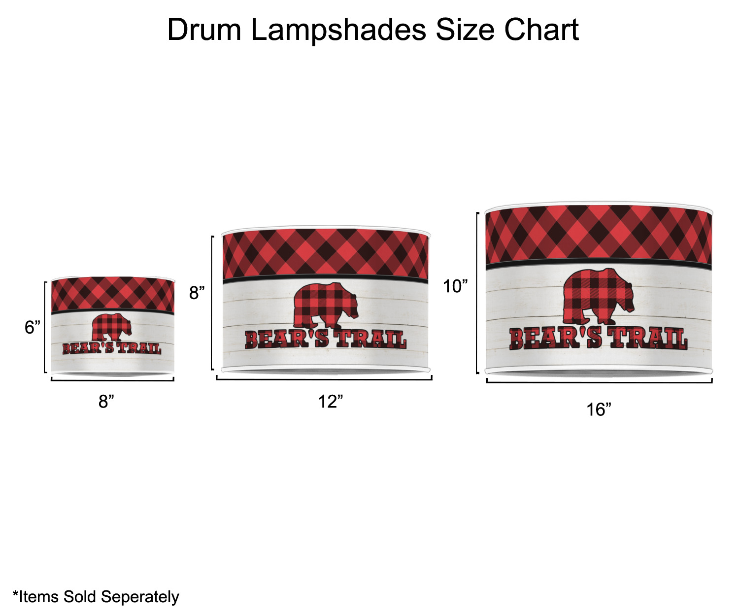 Our customized lamp shades also come in 3 different sizes: 8", 12" and 16", measuring at 8" in diameter by 6" tall, 12" in diameter by 8" tall, and 16" in diameter by 10" tall, respectively.