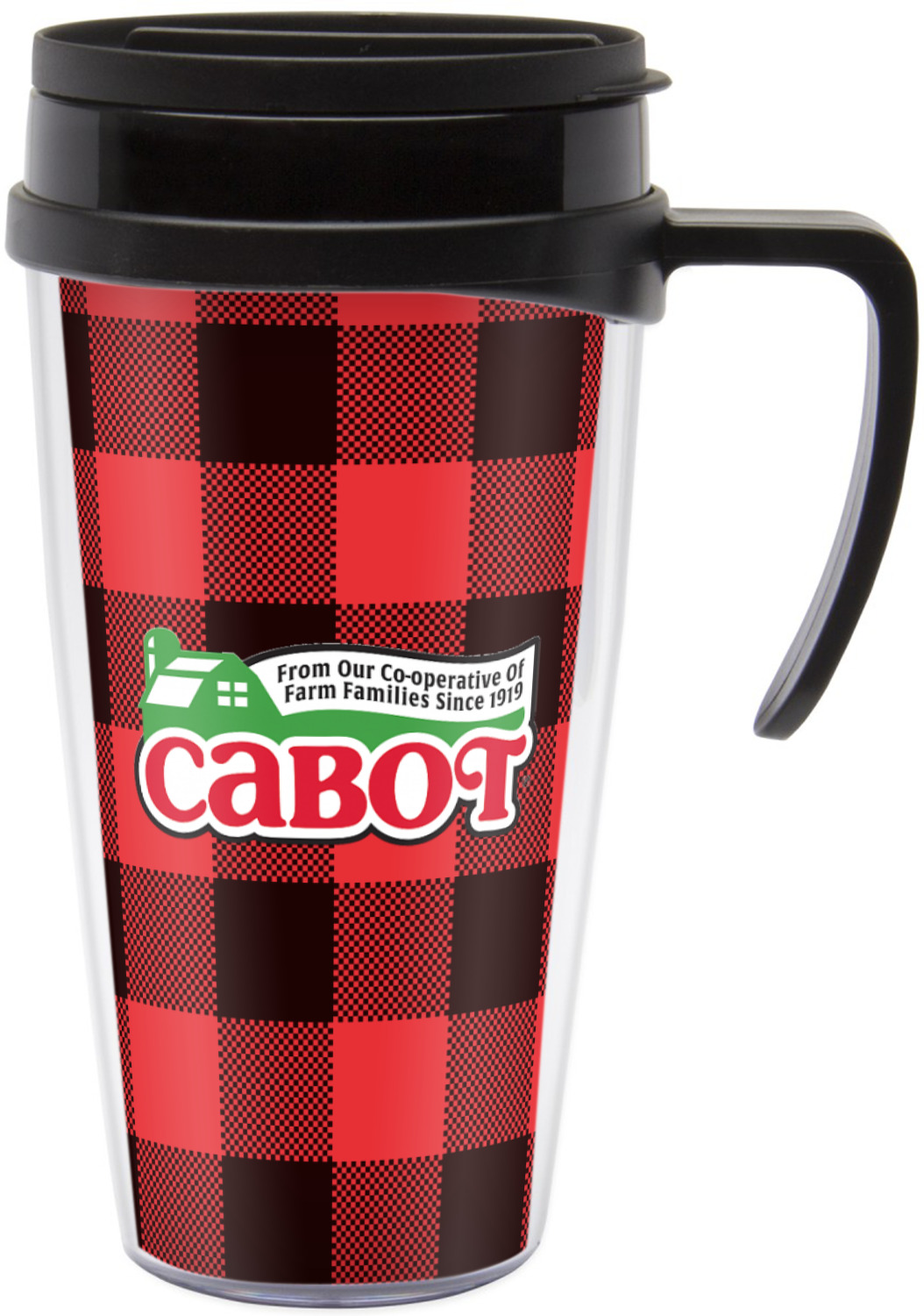 These thermal mugs are free of BPA, and insulated, to keep your drinks hot or cold. The black, snap on lid and the slider for sipping allows you to conveniently sip your drink without constantly worrying about a disastrous spill. We offer this mug with and without a handle, to better suit your needs. Each custom thermal mug holds up to 16 ounces of liquid and displays your customization on all sides on premium gloss media inserts.