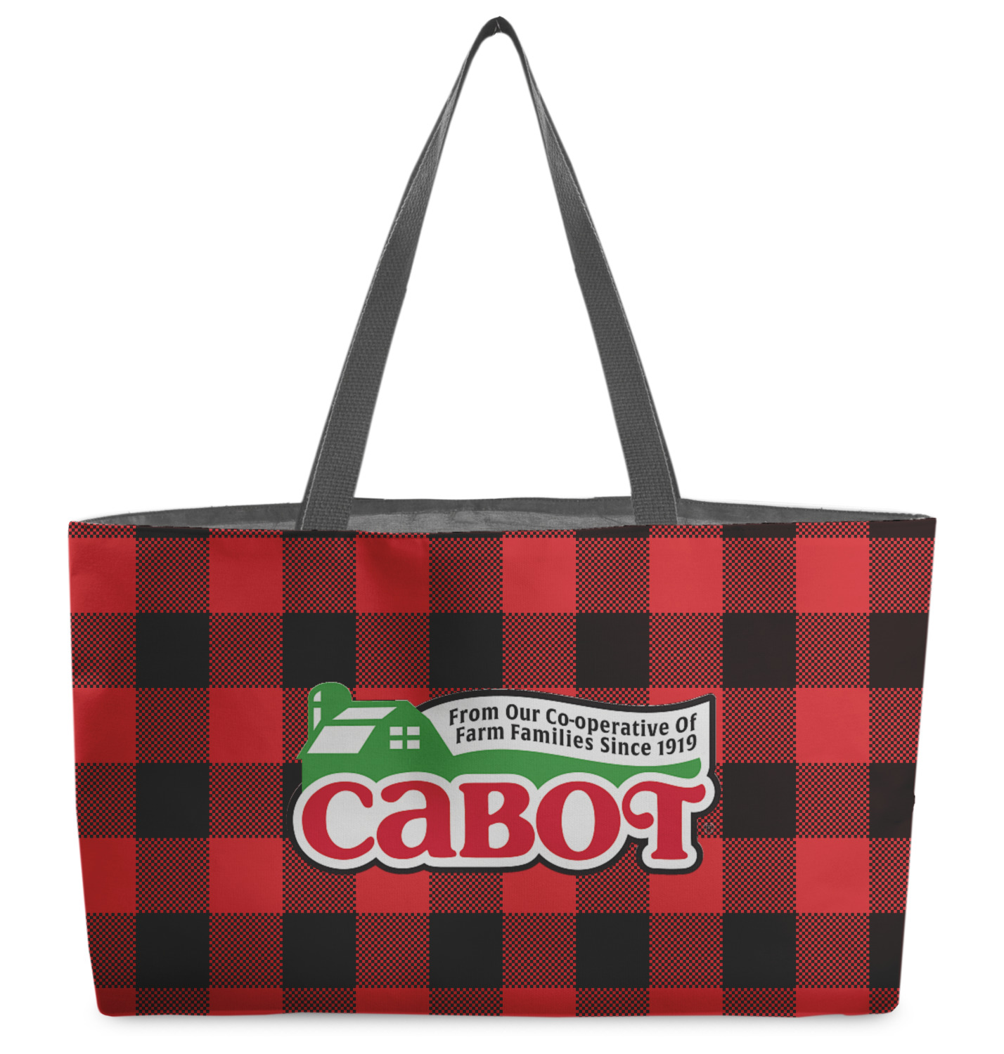 These beach totes are handmade here in the USA. Fabric is printed with your design. The tote is then sewn from the fabric pieces, lining and handles added.