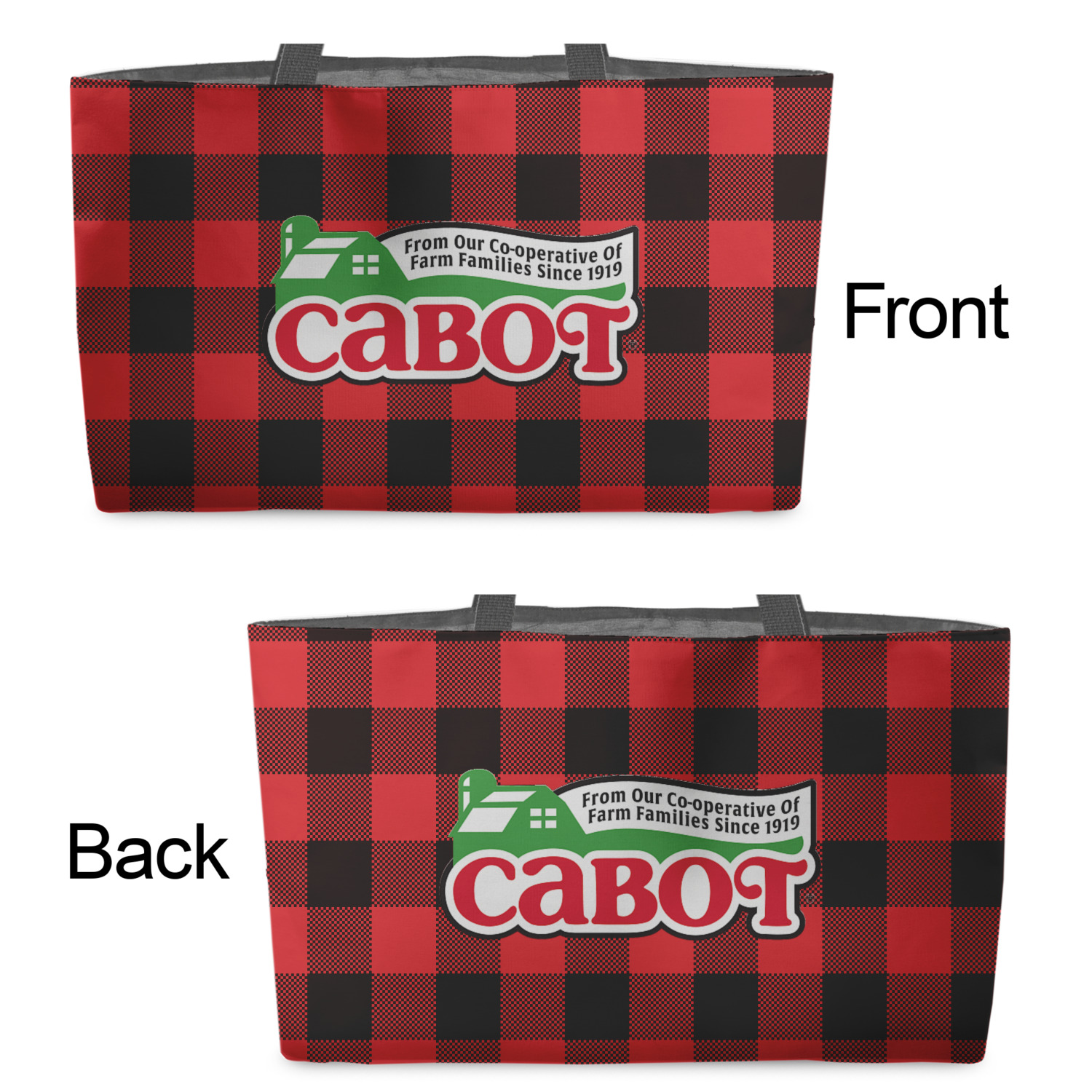 You can design the totes with a design on the front and another one on the back. The two designs can be identical or completely different. The choice is yours.