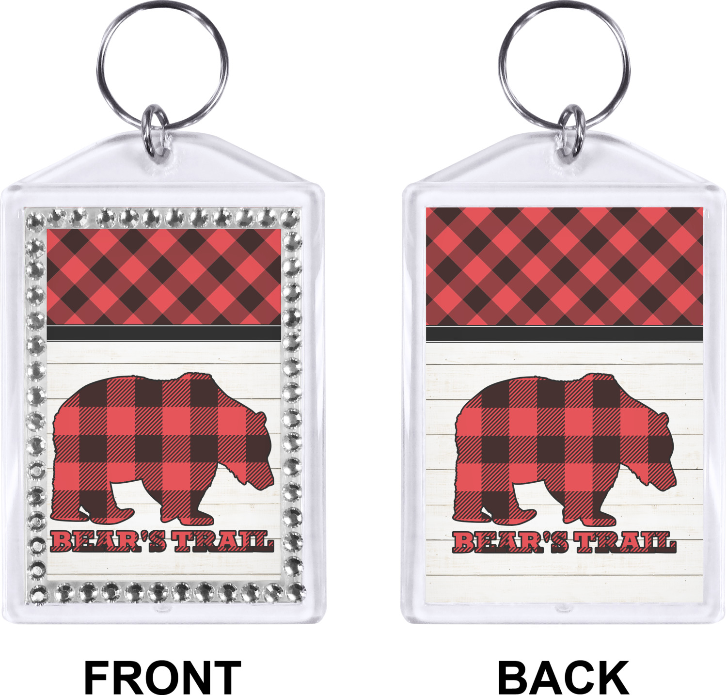 Our personalized keychains have a bold, rectangular shape, outlined by a series of shimmering rhinestones. A metal, split keyring is included with your purchase, and an additional metal hoop allows for attachment of the keychain to the split ring. This unique keychain measures at about 3.75 by 2.5 inches. We print your customized design(s) across both the back and front of this keychain.