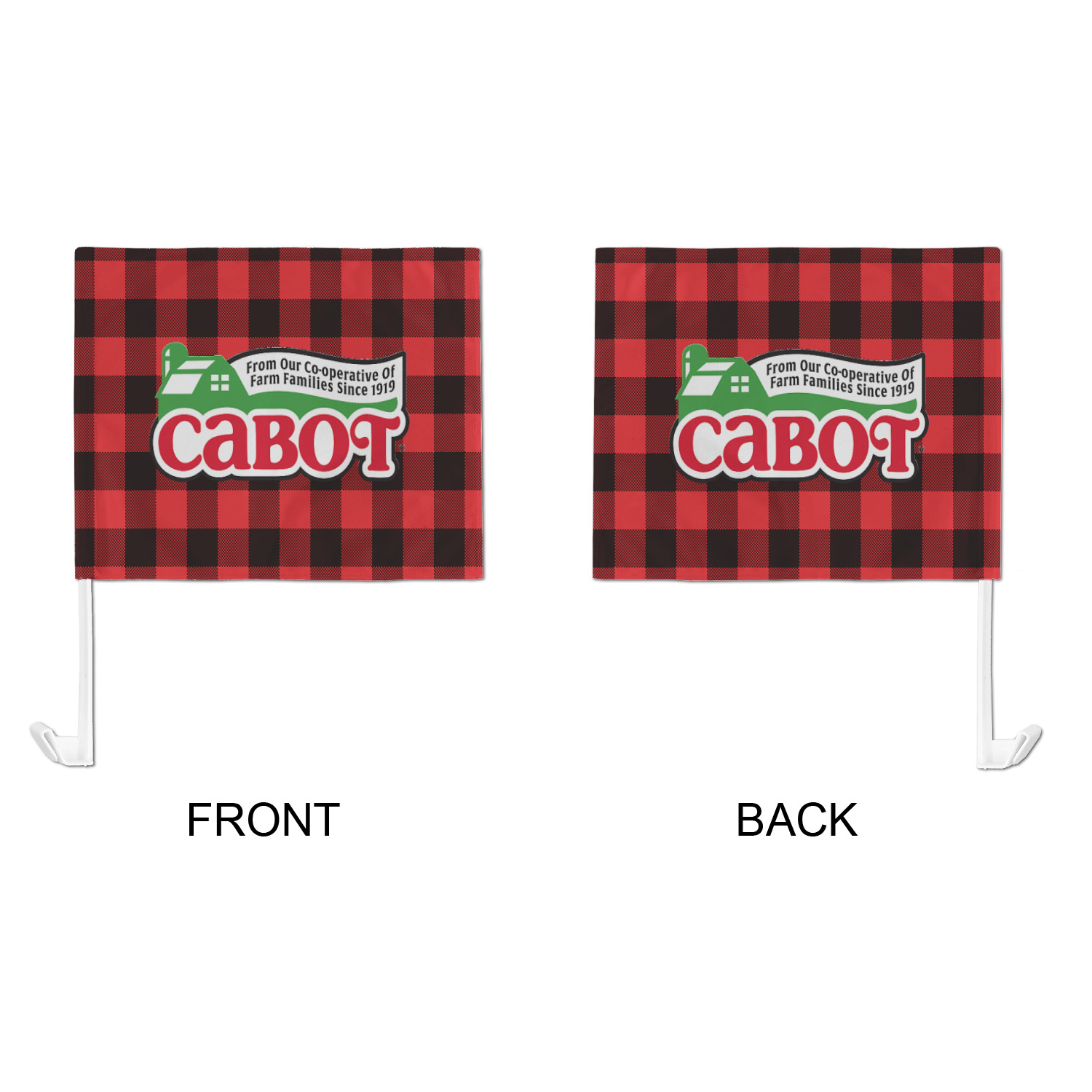 Our personalized flags are made from a durable, yet lightweight cloth that will proudly bear your logo or design of choice, while withstanding the outside elements. We have two size options - 8" x 11" and 11" x 15". Both come with a flag pole which includes a clip that secures the pole to the side window, whether it is rolled up or down. The flags are printed on both sides to display your design from all directions.