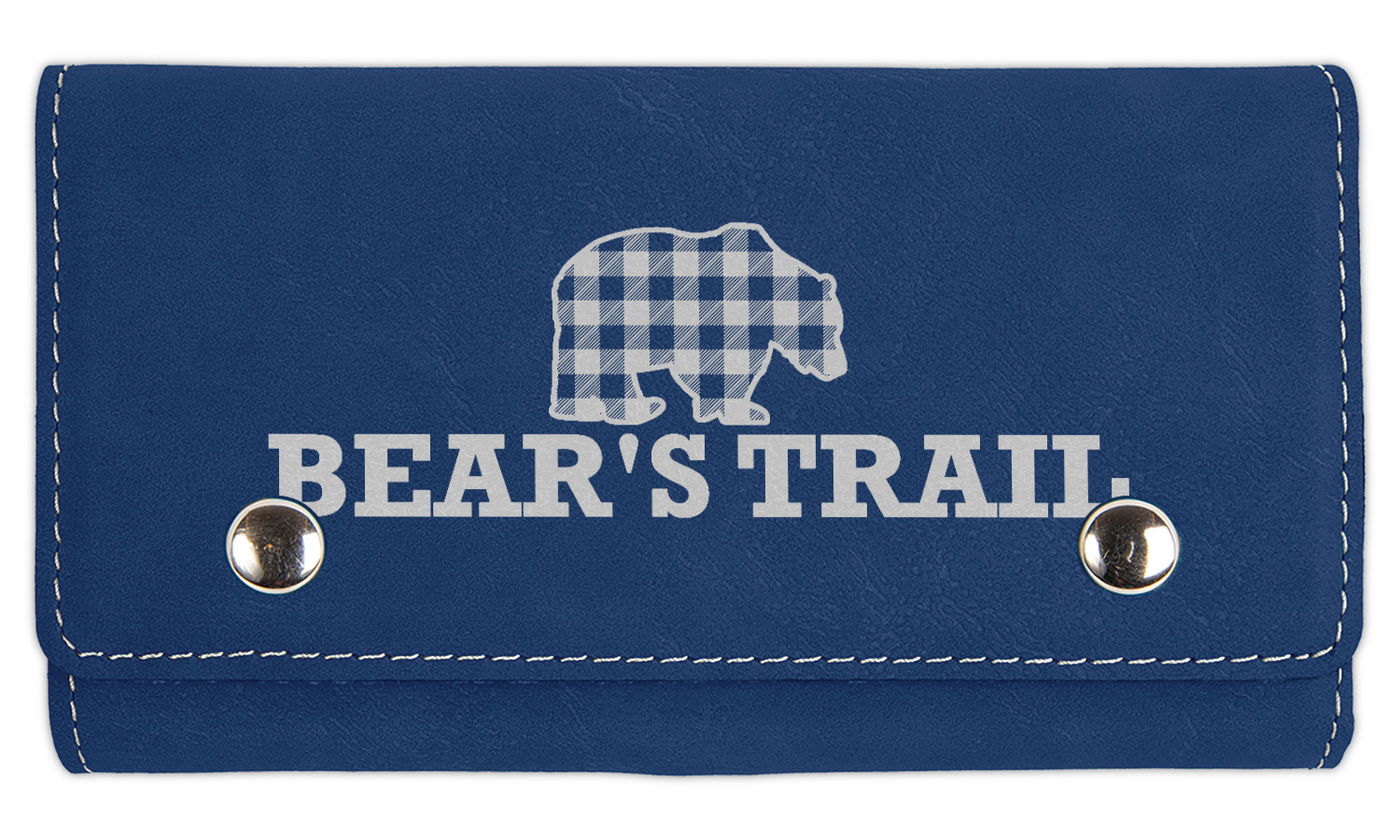 The main design is split into two asymmetrical sections. The top section is a diagonal red and black plaid, while the bottom is a light wood texture. On top of the wood texture is where your graphic and personalization go! The bear graphic and text below are filled with another black and red plaid.