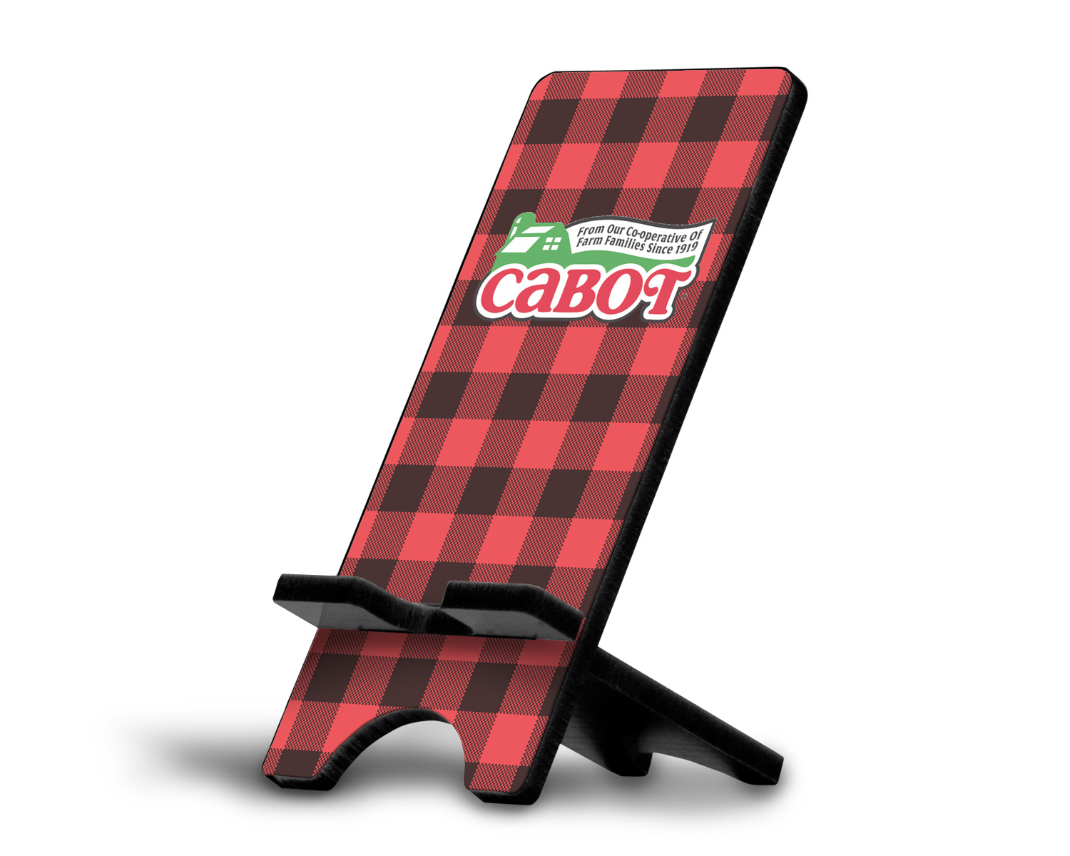 These cell phone holders are comprised of two hardboard pieces, that lock into and steady one another. The bottom part of the mobile phone stand is spacious enough to support both your phone and your charger, while it is not in use. We print your customization atop the face of this stand, while the remaining sides are a sophisticated, black color.