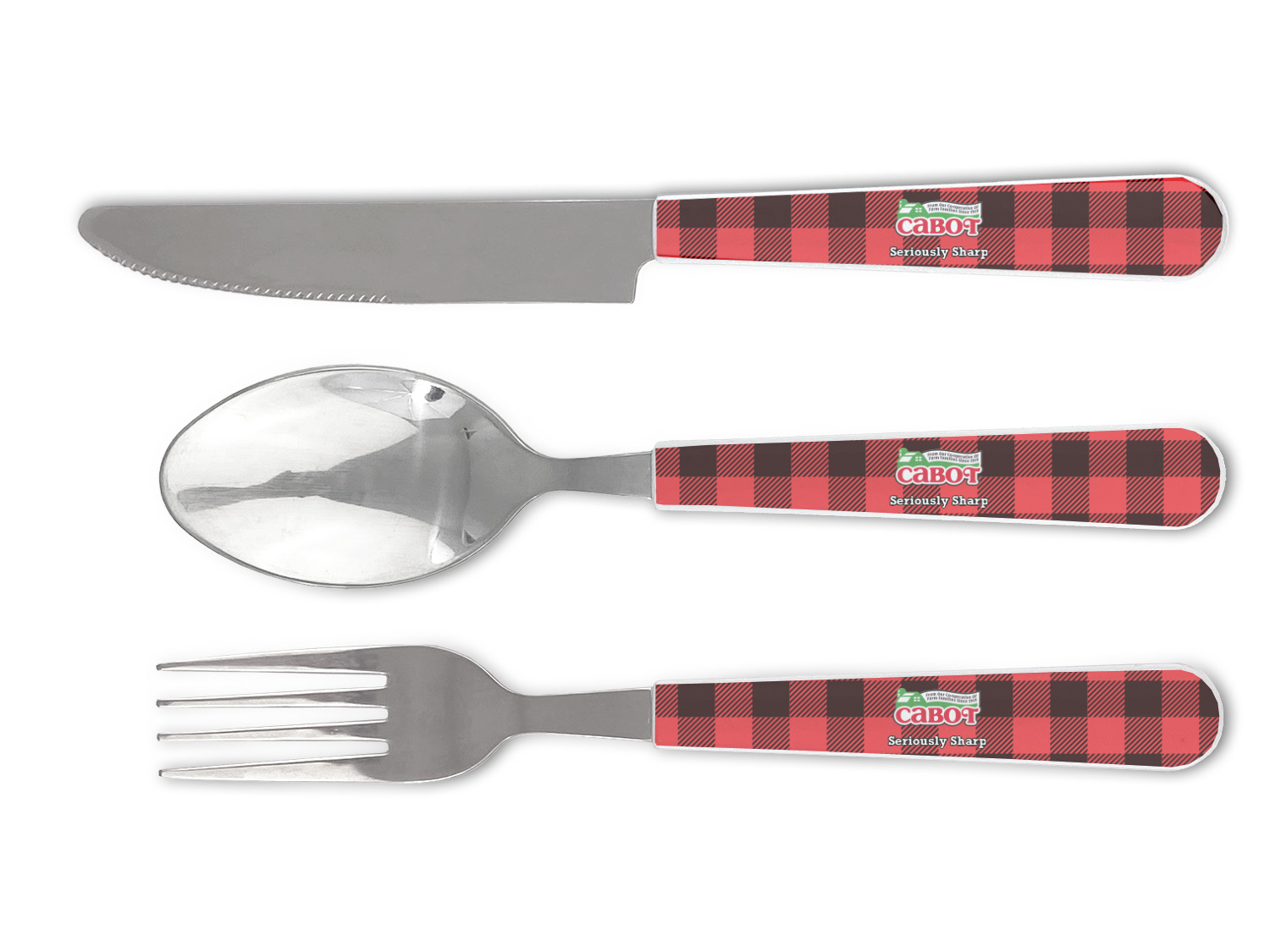 One of those items we all use on a daily basis and never give it much thought - cutlery. Having your own customized set of cutlery adds that special touch. A great addition to our custom plates and drinking pint glasses, this flatware set can be made in the same patterns to match.