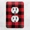 The main design is split into two asymmetrical sections. The top section is a diagonal red and black plaid, while the bottom is a light wood texture. On top of the wood texture is where your graphic and personalization go! The bear graphic and text below are filled with another black and red plaid.