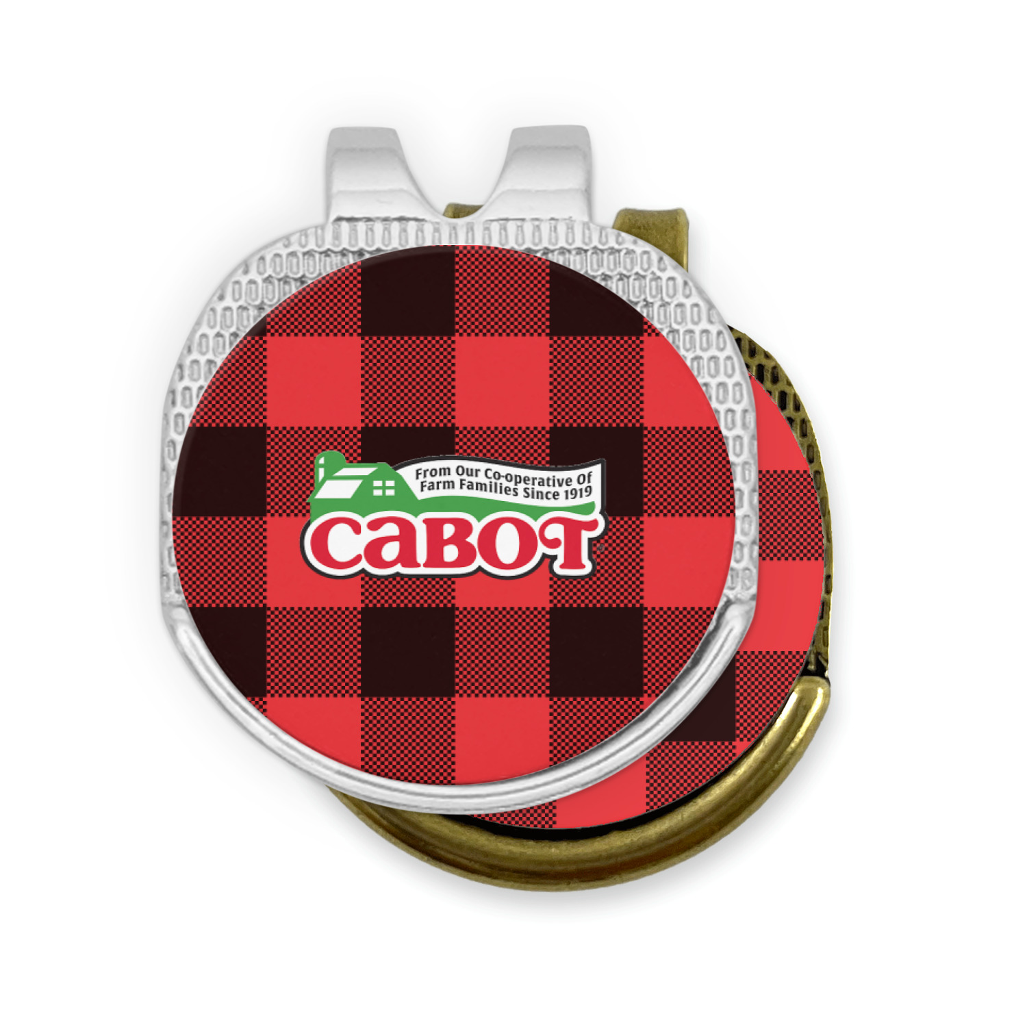 This round shaped little clip is simply 1.25" x 1.5". A clip wraps around to the back of the ball marker holder in order to be able to clip it to the bill of your hat or even your belt. The metal ball marker attaches by a magnet on the clip. Available in stainless steel natural finish or gold finish, you are sure to find one to suit your style. This makes for convenient removal when you need to use it. No more digging in your bag or pockets trying to find it!