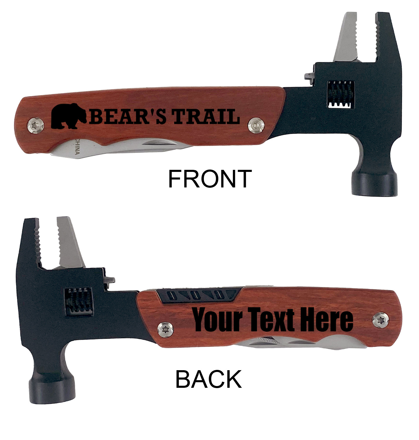 The main design is split into two asymmetrical sections. The top section is a diagonal red and black plaid, while the bottom is a light wood texture. On top of the wood texture is where your graphic and personalization go! The bear graphic and text below are filled with another black and red plaid.
