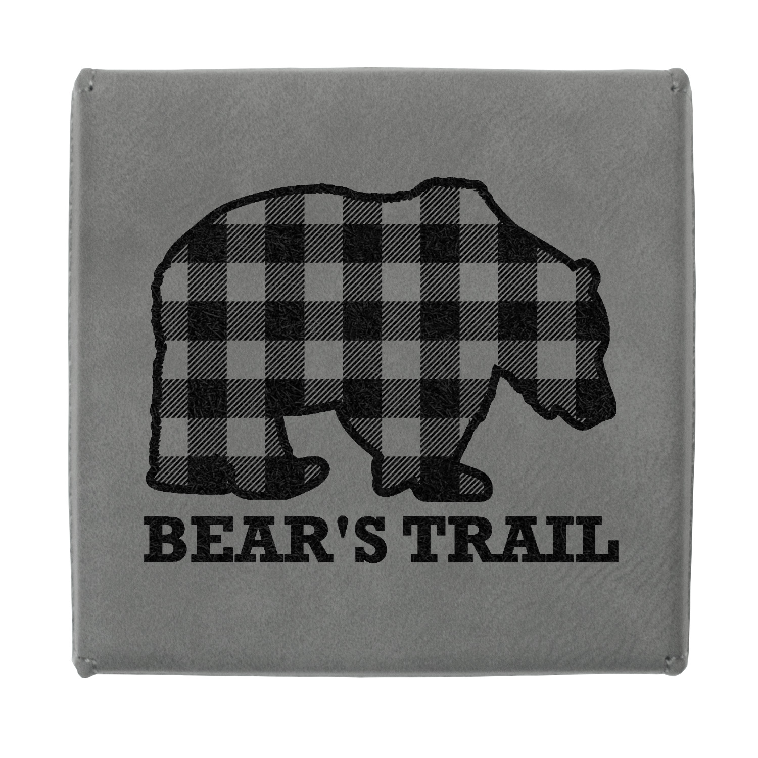 The main design is split into two asymmetrical sections. The top section is a diagonal red and black plaid, while the bottom is a light wood texture. On top of the wood texture is where your graphic and personalization go! The bear graphic and text below are filled with another black and red plaid.