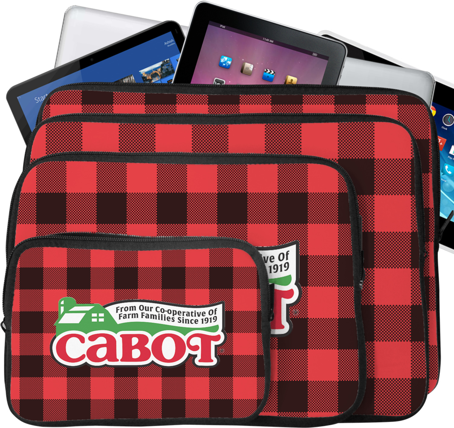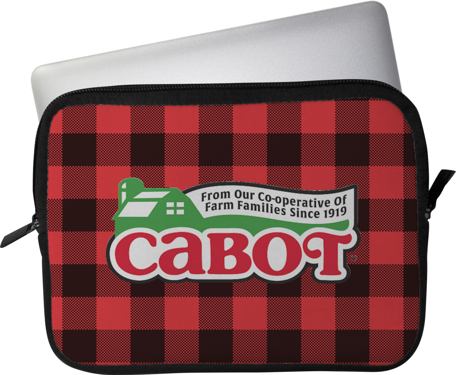 These laptop covers are built from a water-resistant, cushioned neoprene. We display your personalized design on the front of this computer sleeve, while the other sides are simply the black color of the neoprene fabric. A zipper lines the top half of this case, for direct access to your device. For added protection, the interior of this neoprene laptop sleeve is lined with a padded, minky-like material.