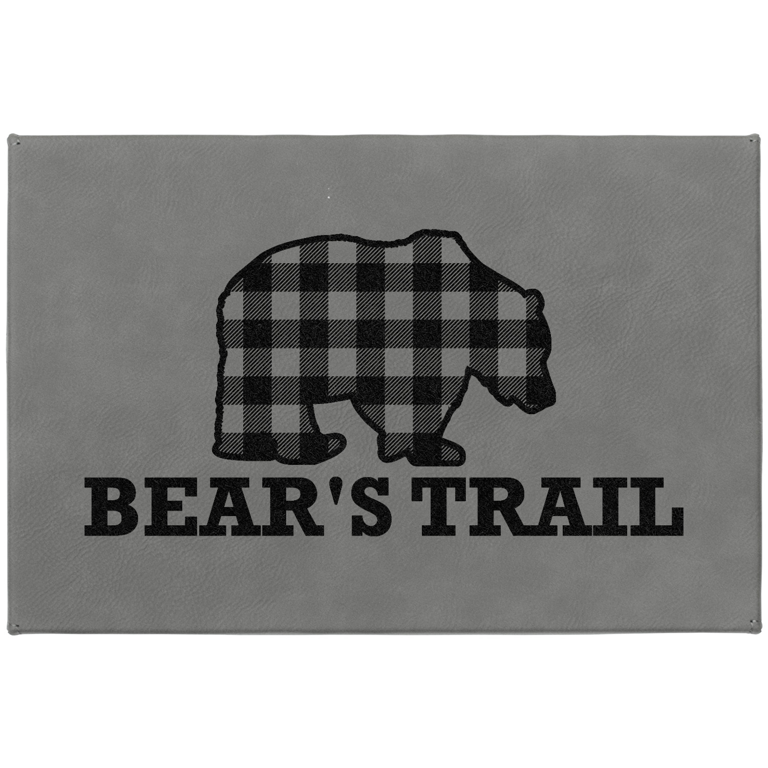 The main design is split into two asymmetrical sections. The top section is a diagonal red and black plaid, while the bottom is a light wood texture. On top of the wood texture is where your graphic and personalization go! The bear graphic and text below are filled with another black and red plaid.