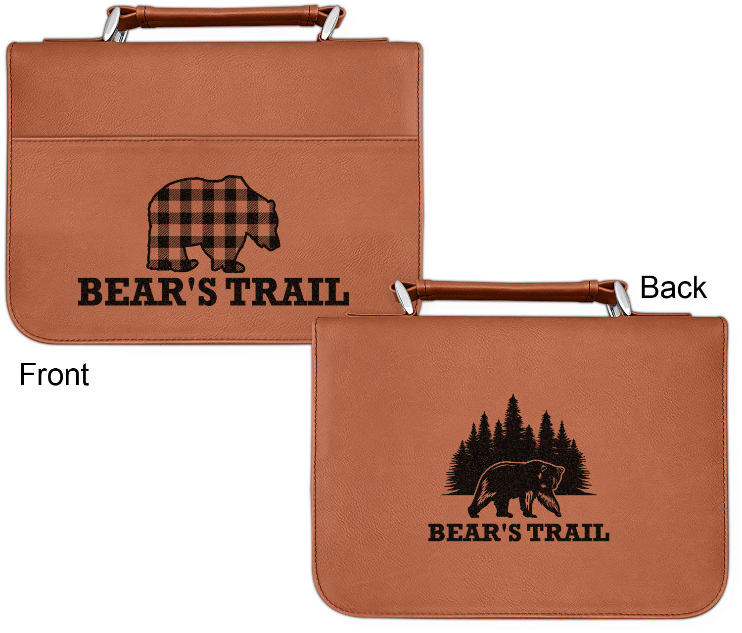 We offer these custom book covers in several variations. First, we offer two different sizes. Our small can accommodate books of up to 8.5" x 6" x 2". The larger size can fit books up to 10" x 7.125" x 2". Both of these sizes can then be customized according to your preference; you can either choose to laser engrave a design on the front and back, or solely the front.