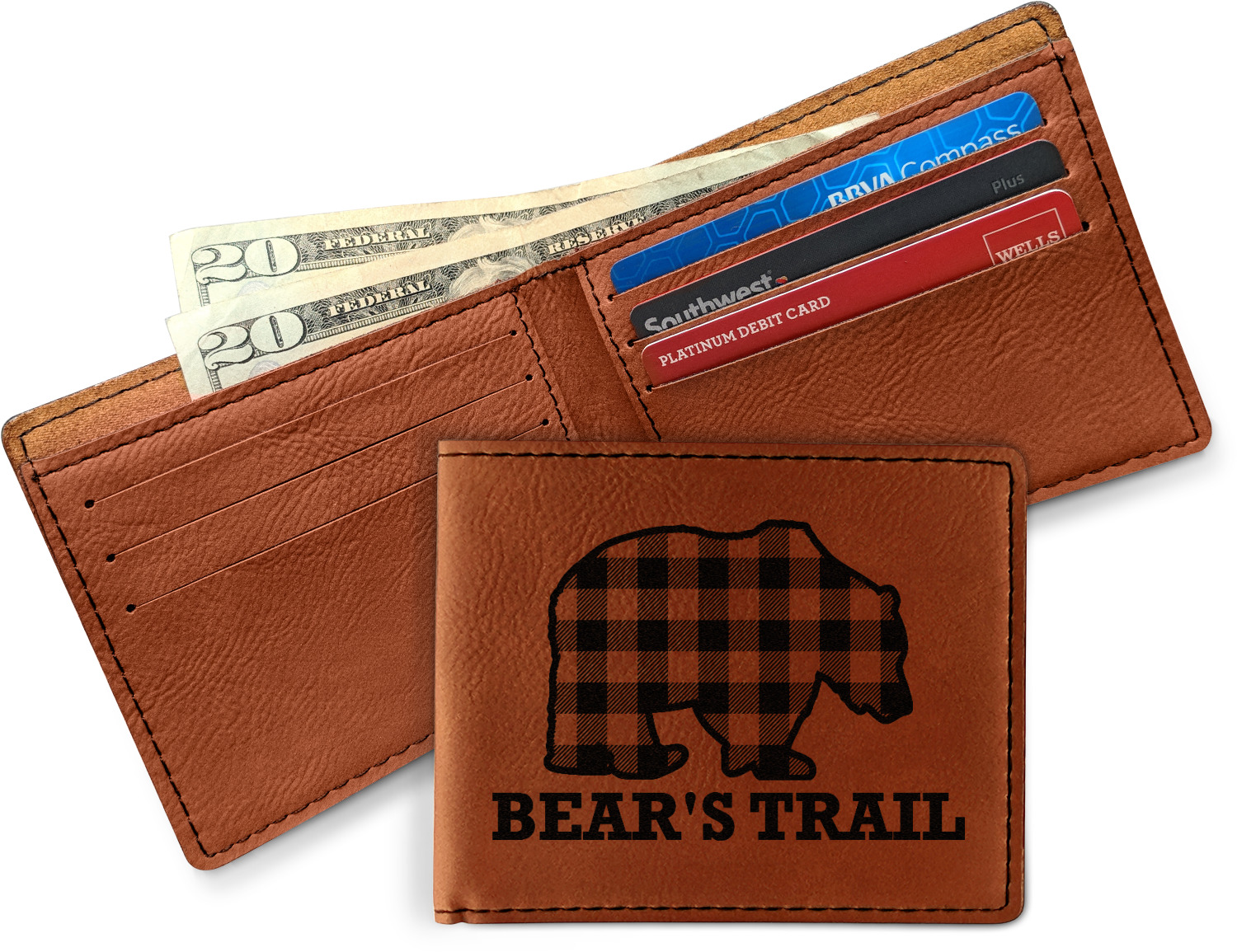 Your bifold wallet will be personalized by laser engraving, which will be a black color on the wallet. Choose a graphic, text, or monogram to personalize your wallet. There are thousands of choices in our design center.