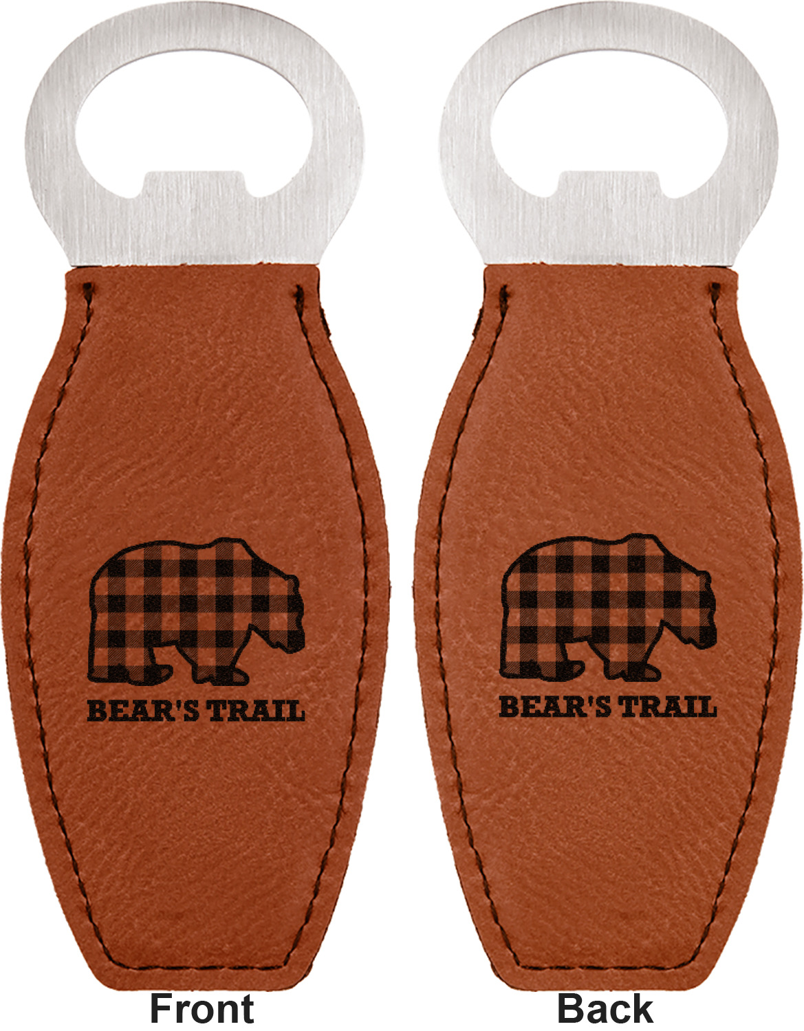 Built from stainless steel, these custom bottle openers are wrapped in a cognac-colored leatherette. Sharp, black stitching lines the edges for extra durability and a finished touch. Your personalization is laser-engraved onto the surface of this leatherette, leaving behind a crisp, black coloration. At 4.6 by 1.8 inches, this beer bottle opener gives you much of leverage when trying to open a stubborn bottle. On the opposite end of the opener, you'll find a magnet that you can use to display your new, unique bottle opener!