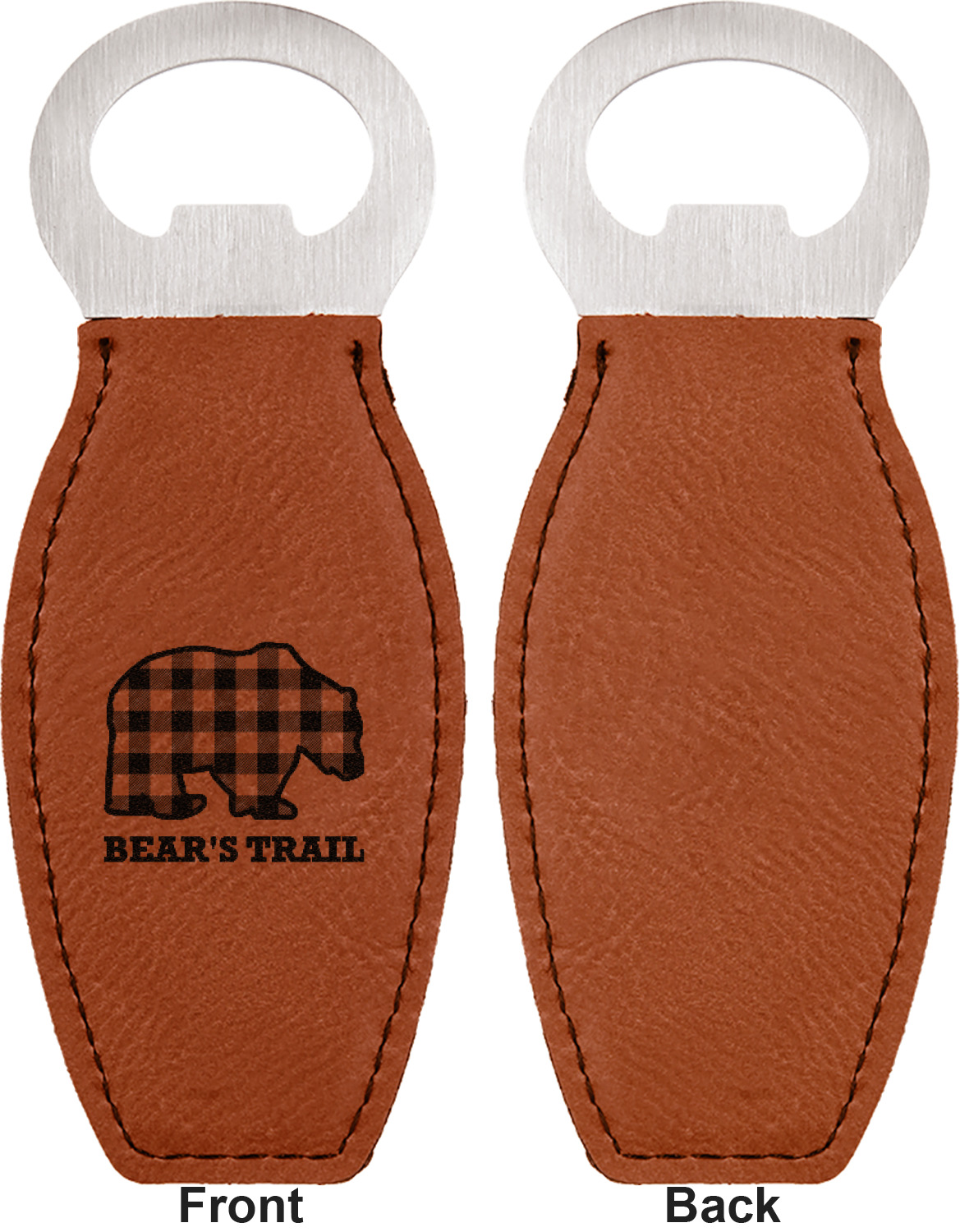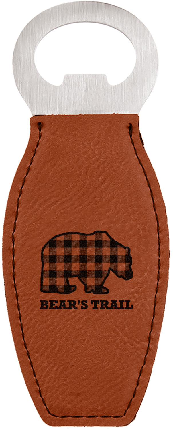 Built from stainless steel, these custom bottle openers are wrapped in a cognac-colored leatherette. Sharp, black stitching lines the edges for extra durability and a finished touch. Your personalization is laser-engraved onto the surface of this leatherette, leaving behind a crisp, black coloration. At 4.6 by 1.8 inches, this beer bottle opener gives you much of leverage when trying to open a stubborn bottle. On the opposite end of the opener, you'll find a magnet that you can use to display your new, unique bottle opener!