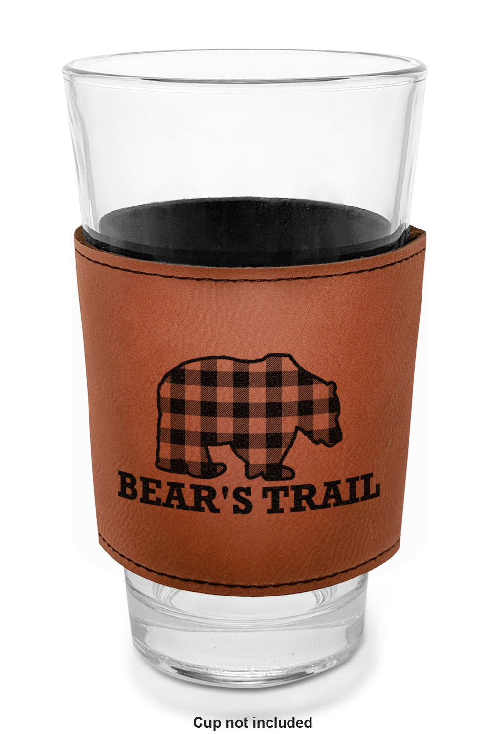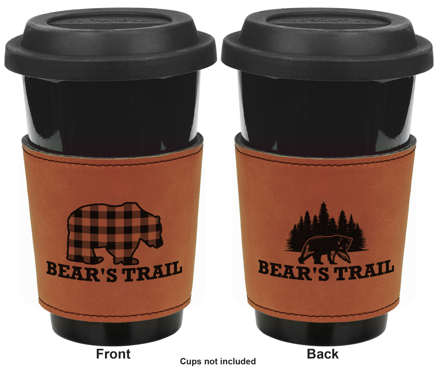 This cup sleeve is made from a suave, cognac-brown leatherette and finished with an intricate, black stitch. The interior of this can sleeve is fabricated from a thin foam material to help insulate your mug's contents. The sleeve is specifically made to suit tapered glasses or mugs, so the top's diameter is 3.5 inches, while the bottom's diameter is 2.75 inches. Your customized design will be laser engraved into the leatherette, leaving behind crisp, black imprint. With these products, we provide you with the option of engraving the front and back, or the front only.