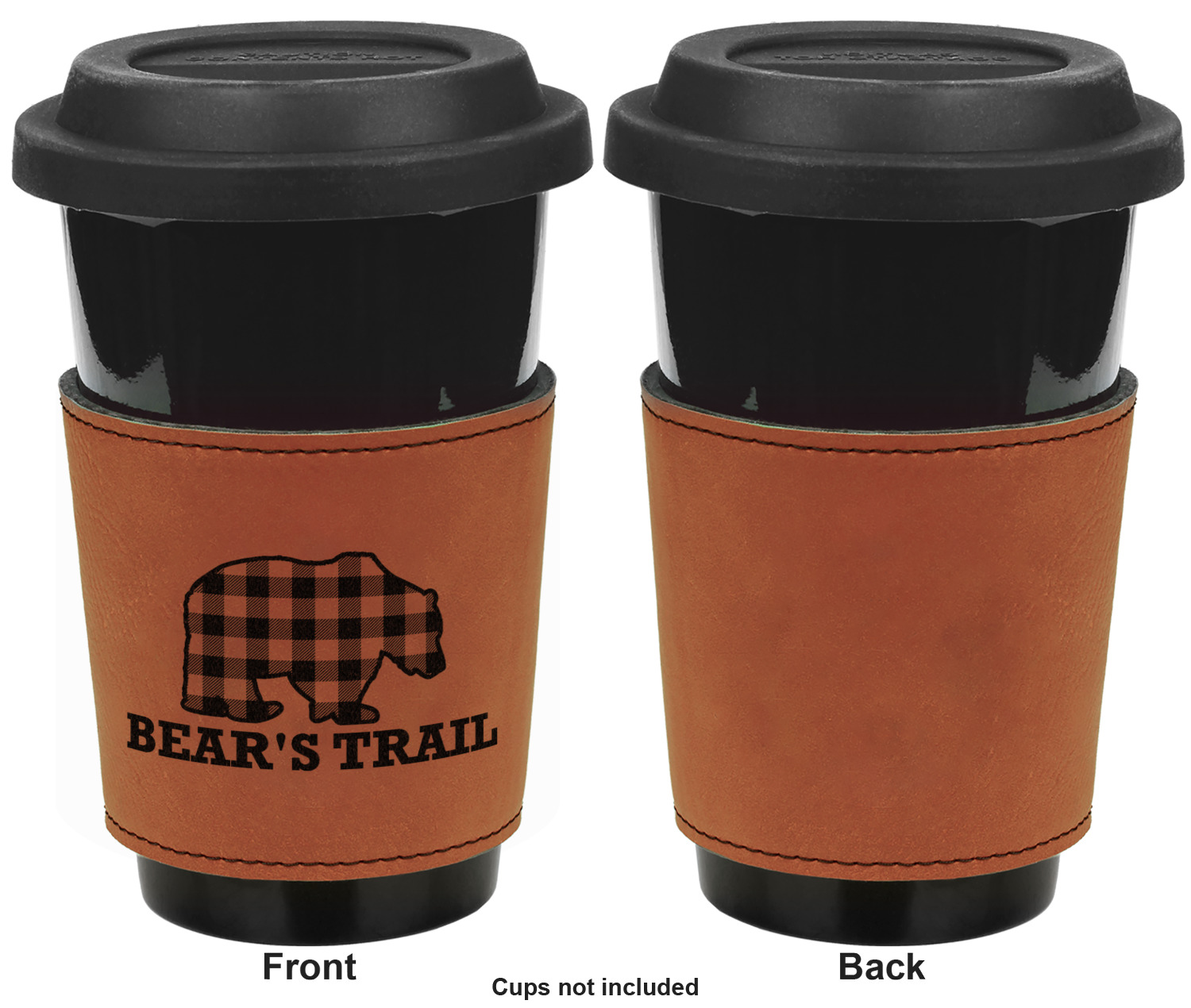 This cup sleeve is made from a suave, cognac-brown leatherette and finished with an intricate, black stitch. The interior of this can sleeve is fabricated from a thin foam material to help insulate your mug's contents. The sleeve is specifically made to suit tapered glasses or mugs, so the top's diameter is 3.5 inches, while the bottom's diameter is 2.75 inches. Your customized design will be laser engraved into the leatherette, leaving behind crisp, black imprint. With these products, we provide you with the option of engraving the front and back, or the front only.