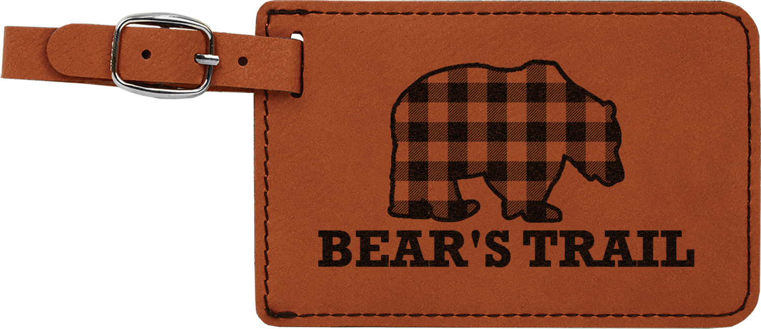 This luggage tag will surely be able to get you started in having all the right tools for traveling. It is made of a beautiful leatherette material that is a nice shade of cognac brown. The front of the tag is where your design goes. The sturdy black stitching gives your design an extra pop and gives the tag extra durability. The back of the tag has a clear vinyl window where you can slip in your address card. The tag comes with a great little buckle strap that you can easily use to clip to your suitcase. The tag itself measures at approximately 5.5"W x 4.25"H.