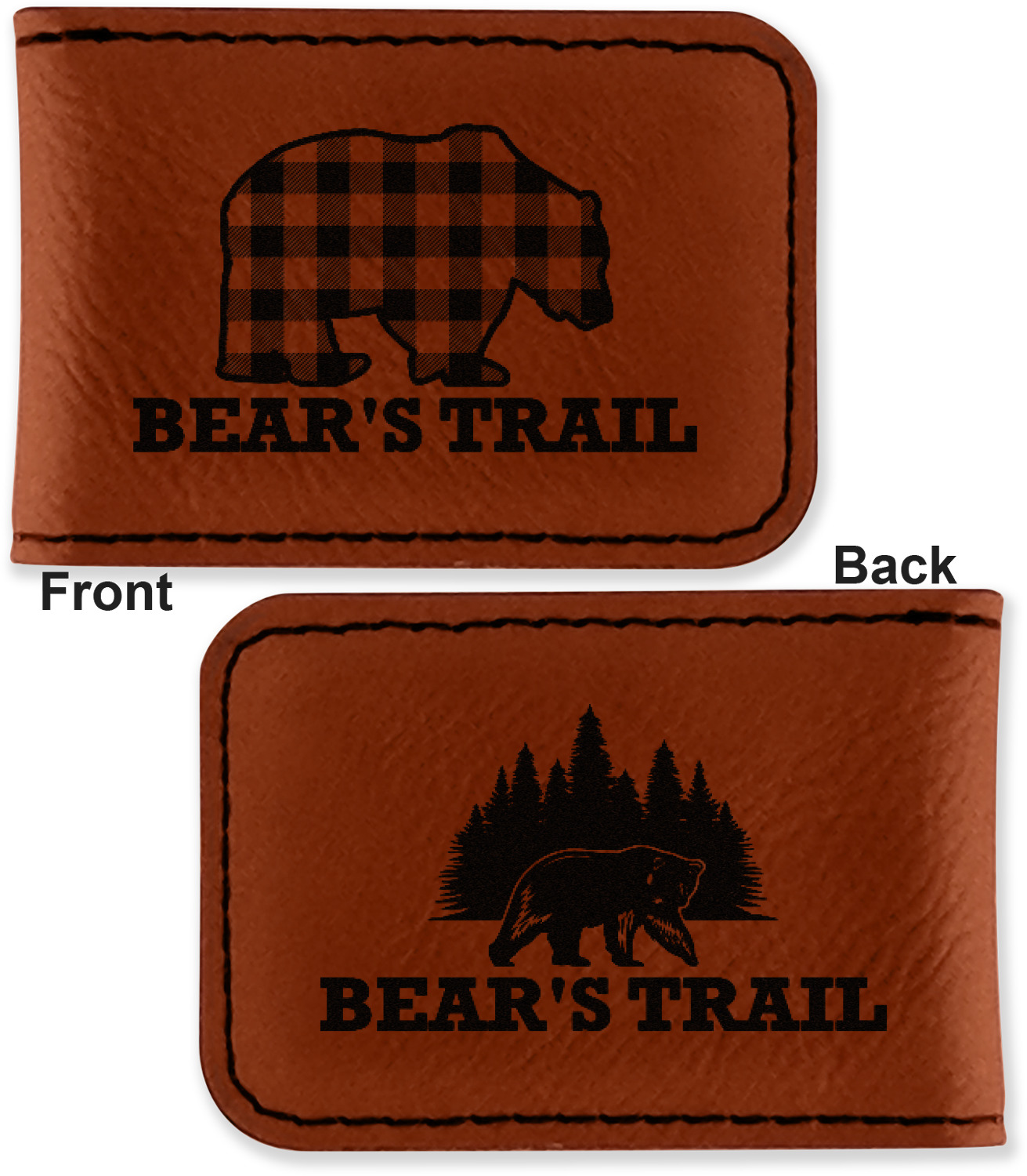 Your money clip will be laser engraved so that the design you choose will come out black. Find a fun graphic, monogram, or font to use to personalize your money clip either on just the front or the front and the back.