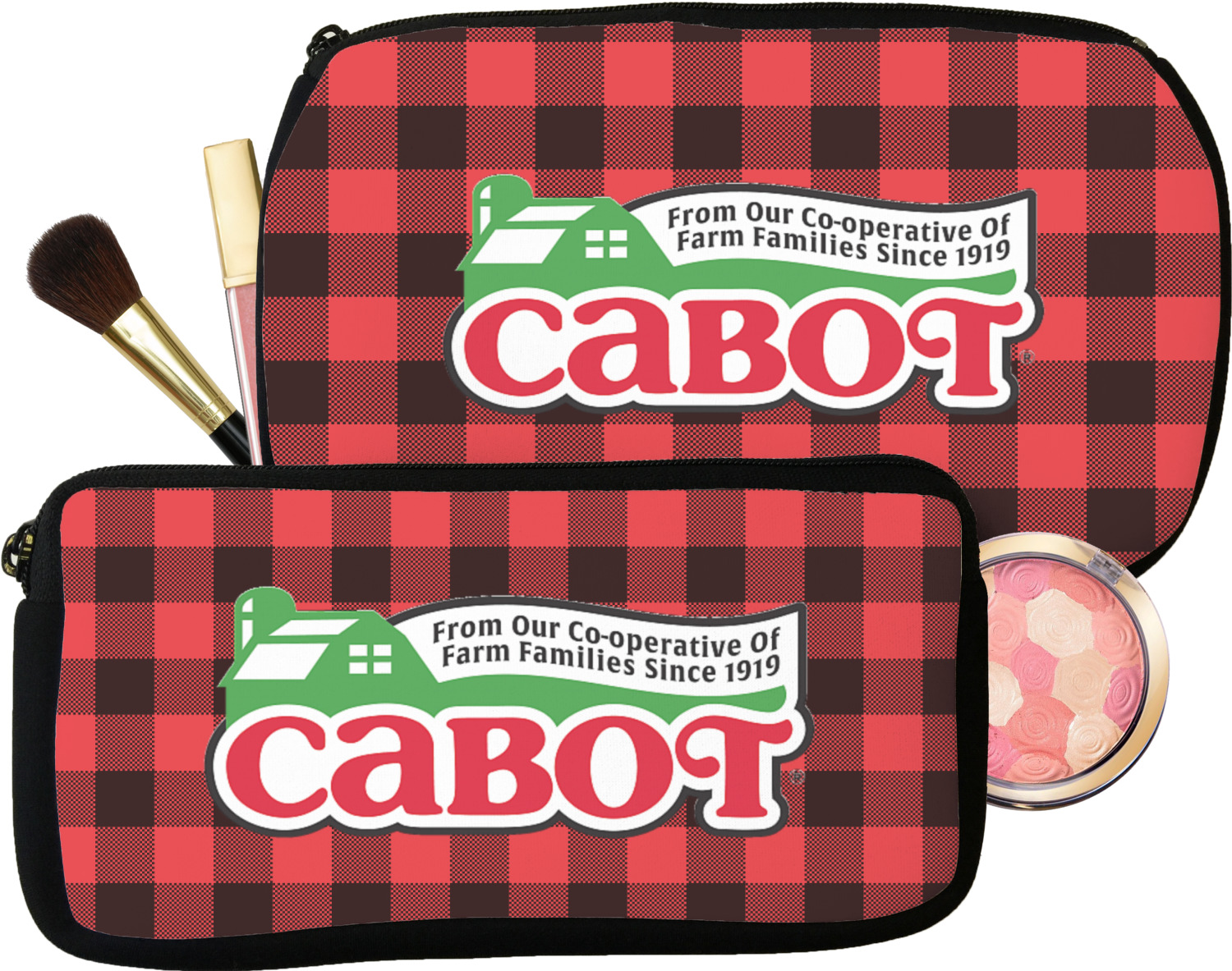 Our makeup bags are available in 2 sizes, small for smaller purses and less makeup, while the medium one for larger purses, as well as more makeup. Neither one of these is big enough for me when I am traveling - so, we do carry custom toiletry bags for travel.