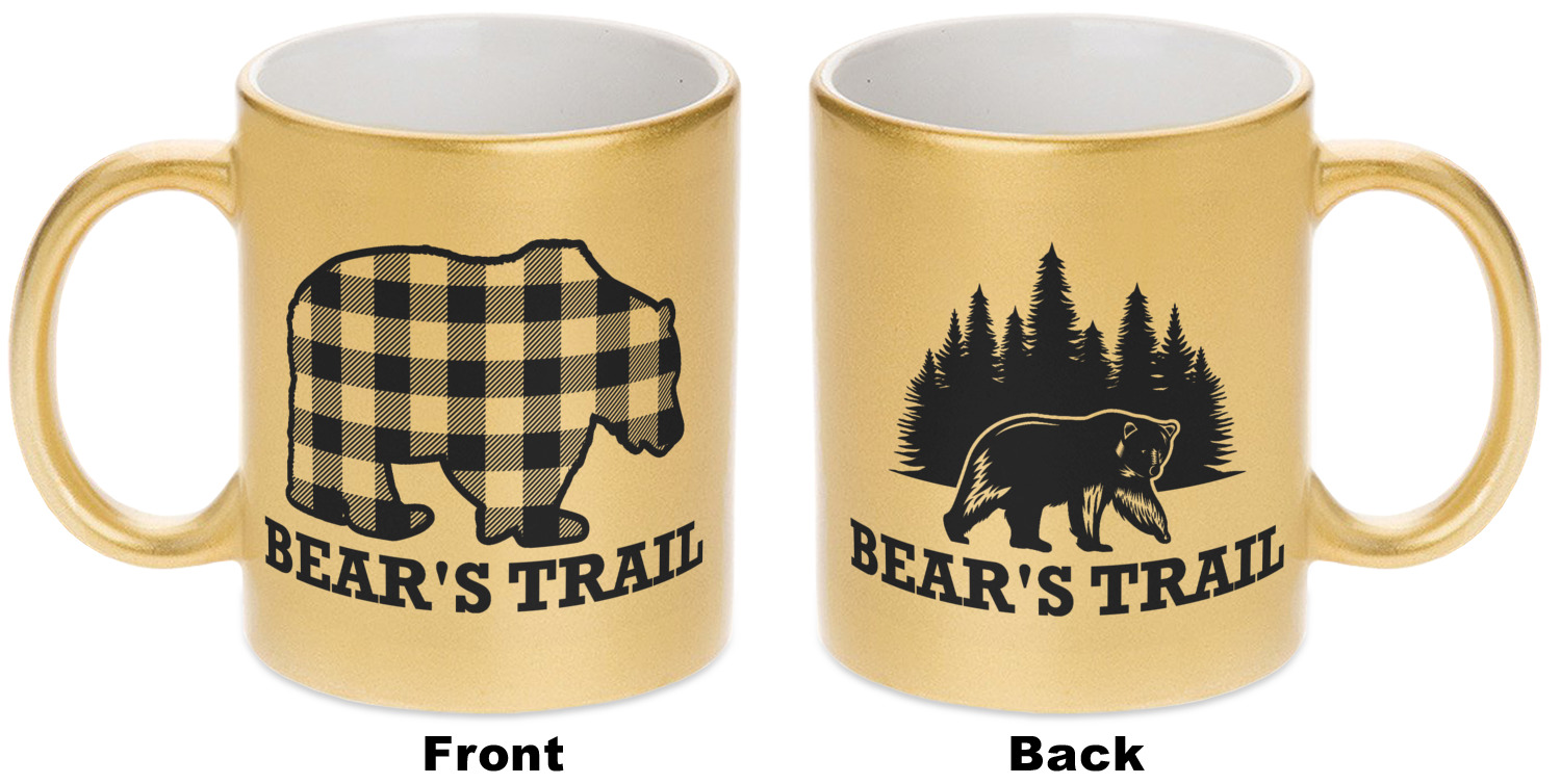 Our custom mugs are ceramic, which is great for keeping your tea or coffee warm! We offer two metallic mugs to personalize - Silver or Gold. Both styles hold around 11oz and have dimensions of approximately 3.75" x 3.5" x 4.75". Both the metallic mugs come in a matte finish and have glitter detailing to add a more pristine feel to the gold and silver base colors.
