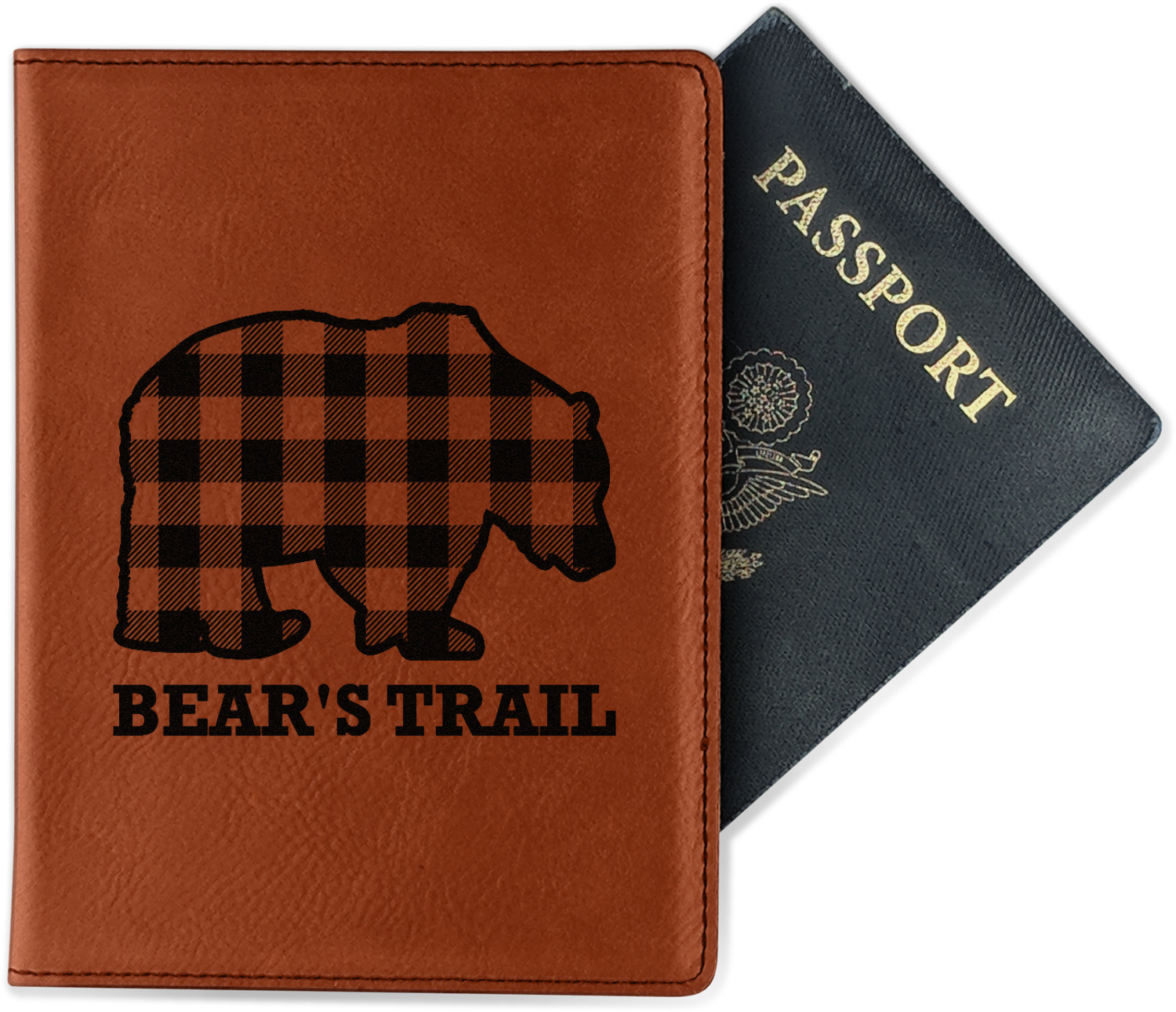 Although they are faux leather, these passport holders feel great in your hand. They are laser engraved either just on the front or the front and back. The image that is engraved onto your passport holder will be shades of black.