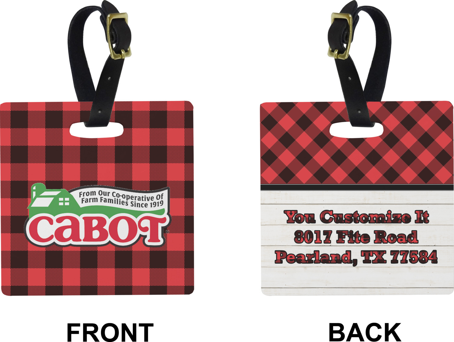These cute luggage tags are made of a fiber-reinforced, UV-resistant plastic, making them waterproof and durable enough for both everyday use and the rugged adventures of any traveler! A leather strap with holes and a buckle is included with your purchase and can be used to attach your custom luggage tag to any suitcase, backpack, or duffel bag. You can design these travel tags as you wish; your customization will be displayed across the front, while the back will show as little or as much personal information as you want.