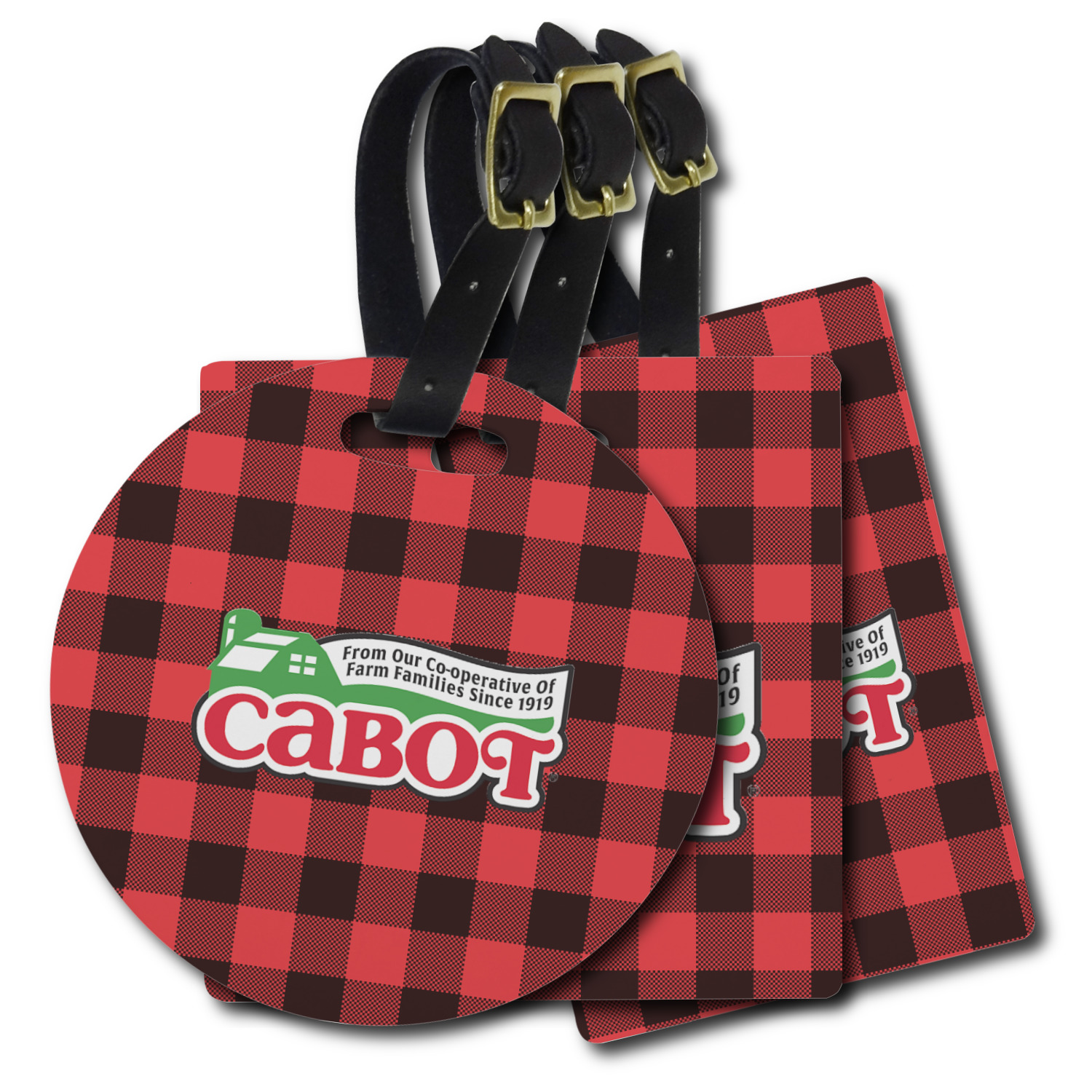 These personalized bag tags are sold in a variety of shapes, so that you may find the product that meets your vision exactly. We sell a round luggage tag, which measures at approximately 4" x 4". Our square luggage tag is about 3.5" x 3.5", while our rectangular version is 2.75" x 4 ".