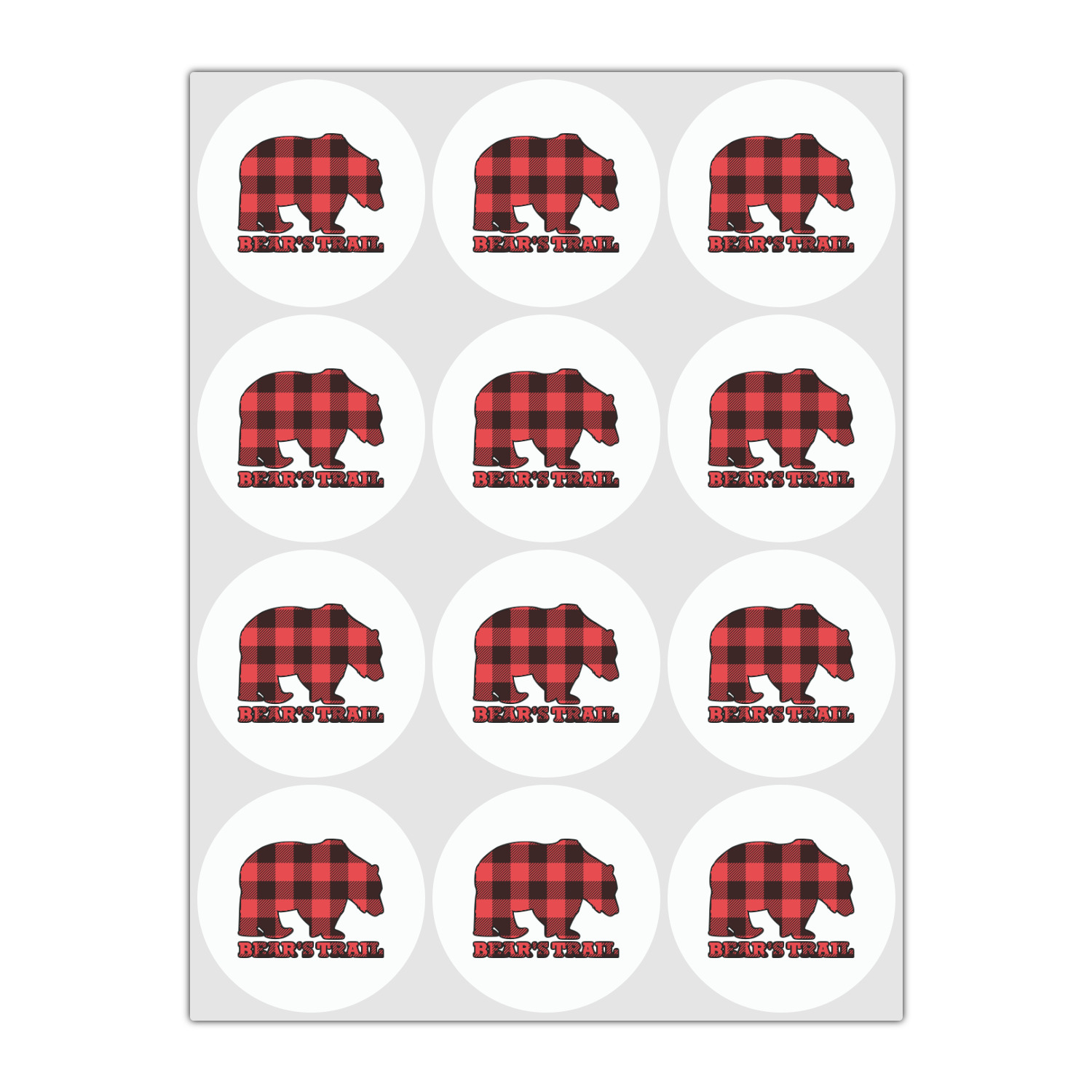 The main design is split into two asymmetrical sections. The top section is a diagonal red and black plaid, while the bottom is a light wood texture. On top of the wood texture is where your graphic and personalization go! The bear graphic and text below are filled with another black and red plaid.