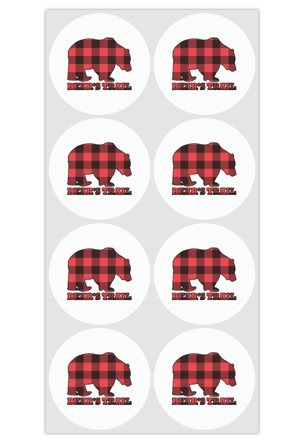 The main design is split into two asymmetrical sections. The top section is a diagonal red and black plaid, while the bottom is a light wood texture. On top of the wood texture is where your graphic and personalization go! The bear graphic and text below are filled with another black and red plaid.