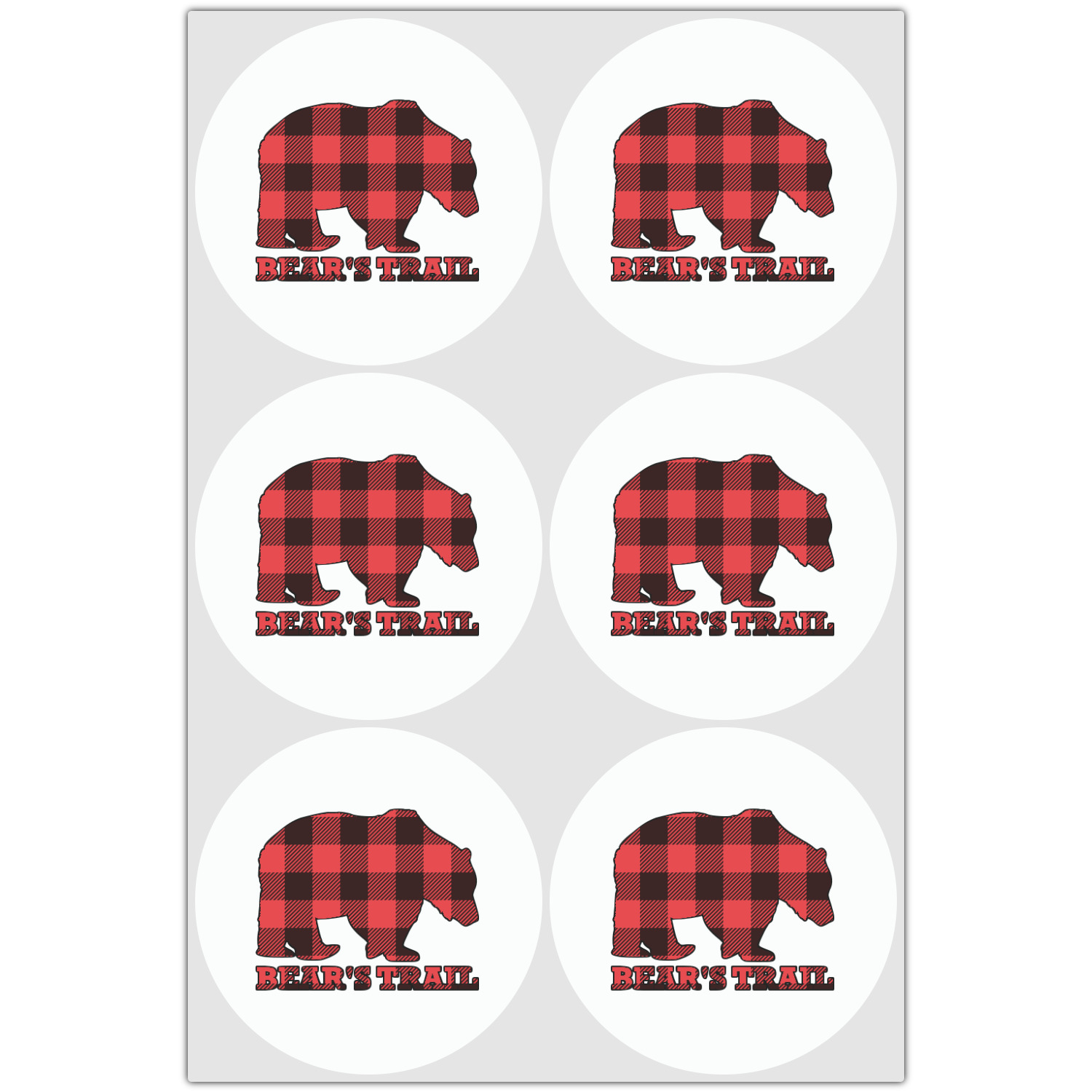 The main design is split into two asymmetrical sections. The top section is a diagonal red and black plaid, while the bottom is a light wood texture. On top of the wood texture is where your graphic and personalization go! The bear graphic and text below are filled with another black and red plaid.
