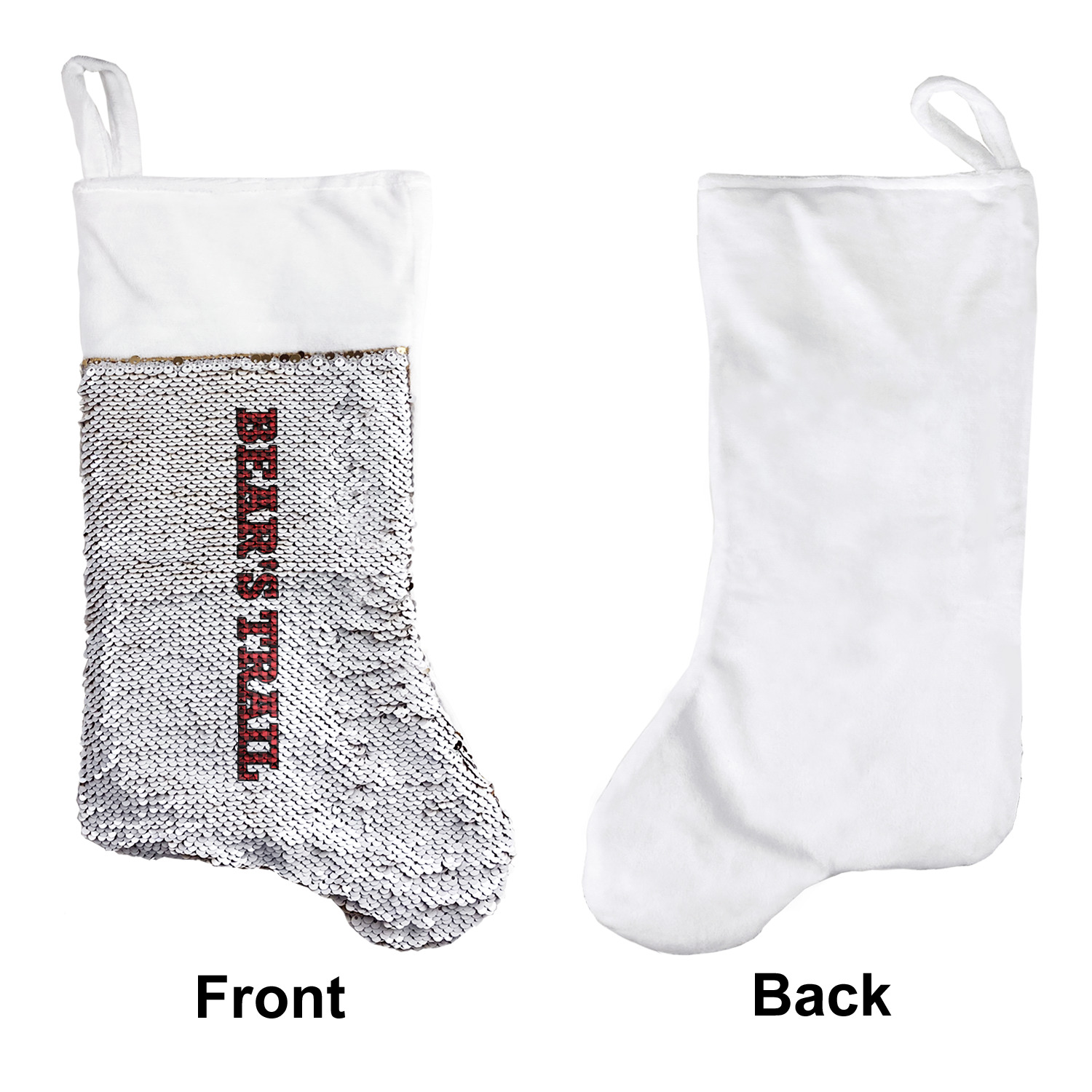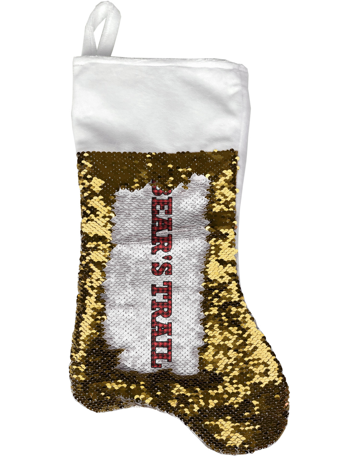 Our fun sequin stockings are made from a soft, yet durable polyester material perfect for any stocking stuffer or holiday decor! Choose from a glamorous gold stocking or classic red sequin stocking for the front color and have your personalized image printed behind for reversible fun! Our sparkly sequin stockings are super fun and decorative perfect for the family and you this holiday! Each stocking is approximately 17" x 9" with a durable loop for hanging and printed here in the US.